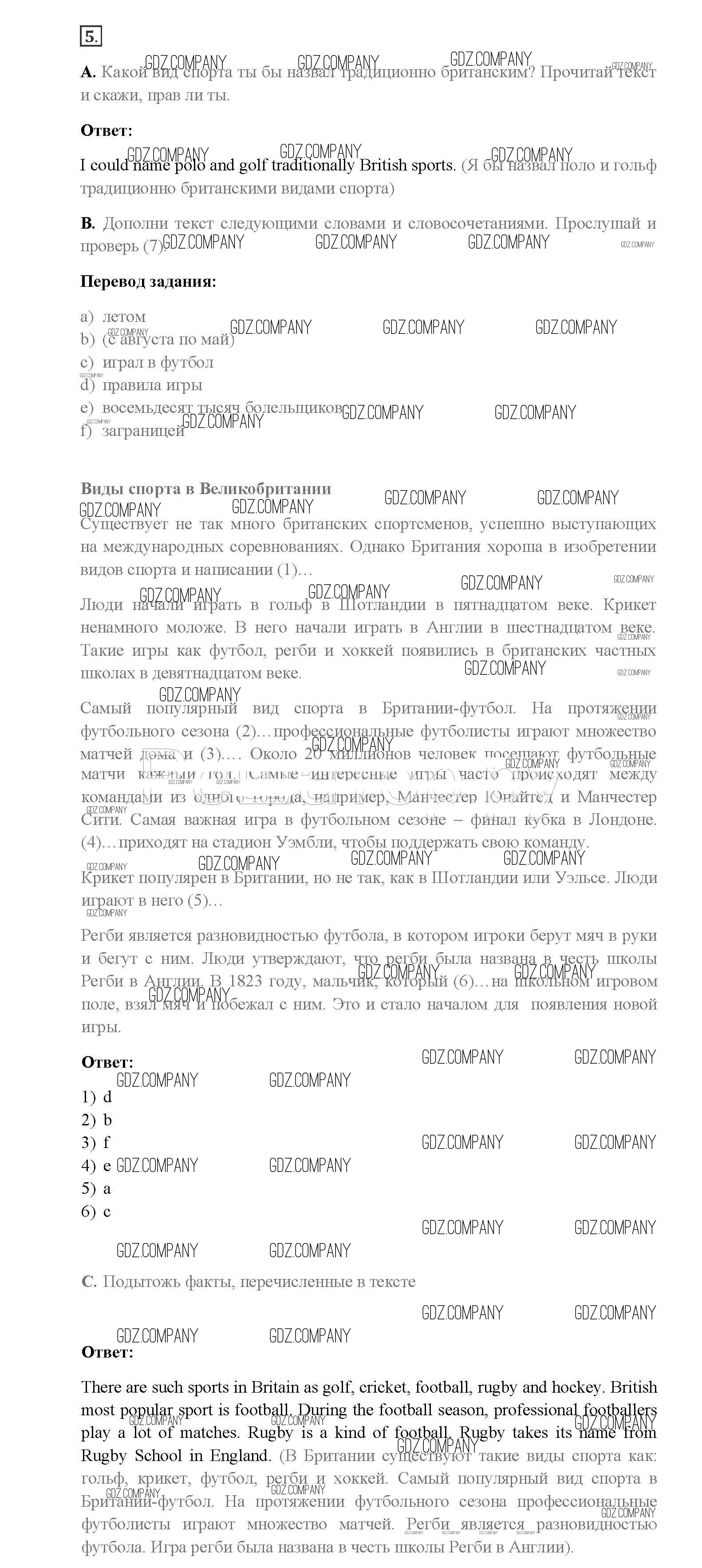 Здесь готовые ответы по Английскому языку за 8 (восьмой) класс от Афанасьева, Михеева, Баранова Учебник Rainbow (издательство: Дрофа от 2016 г.) № 5