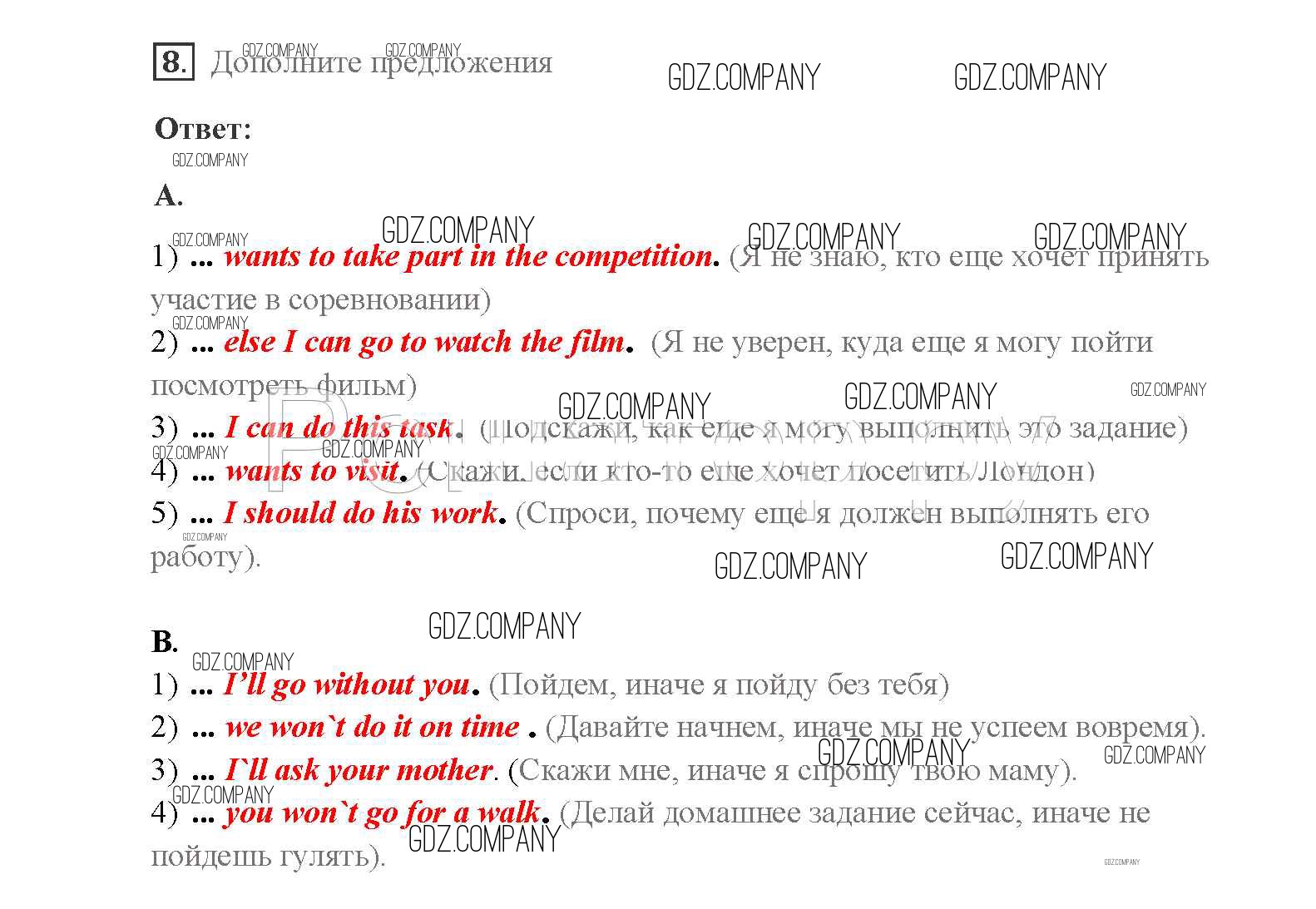 Здесь готовые ответы по Английскому языку за 8 (восьмой) класс от Афанасьева, Михеева, Баранова Учебник Rainbow (издательство: Дрофа от 2016 г.) № 8