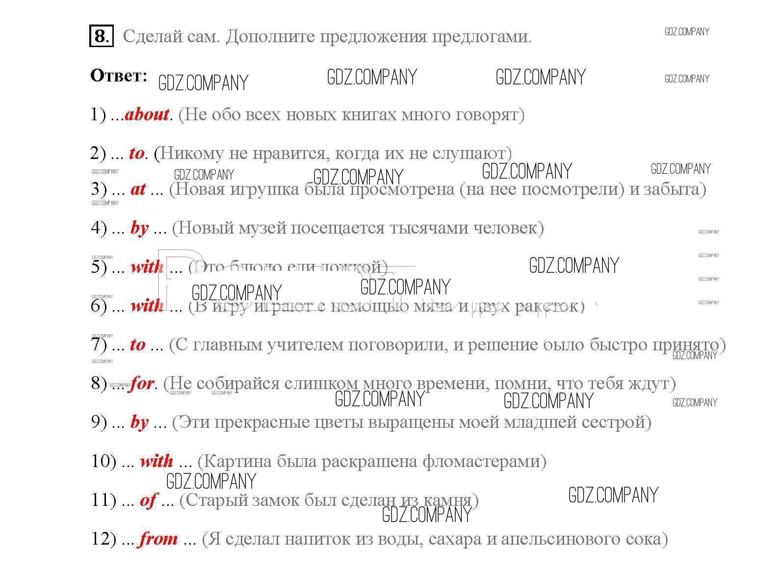 Здесь готовые ответы по Английскому языку за 8 (восьмой) класс от Афанасьева, Михеева, Баранова Учебник Rainbow (издательство: Дрофа от 2016 г.) № 8