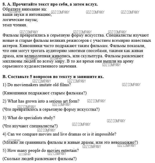 Здесь готовые ответы по Английскому языку за 8 (восьмой) класс от Афанасьева, Михеева, Баранова Рабочая тетрадь Rainbow (издательство: Дрофа от 2016 г.) № 8