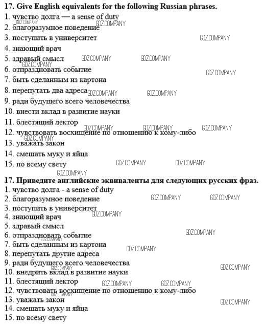 Здесь готовые ответы по Английскому языку за 8 (восьмой) класс от Афанасьева, Михеева, Баранова Рабочая тетрадь Rainbow (издательство: Дрофа от 2016 г.) № 17