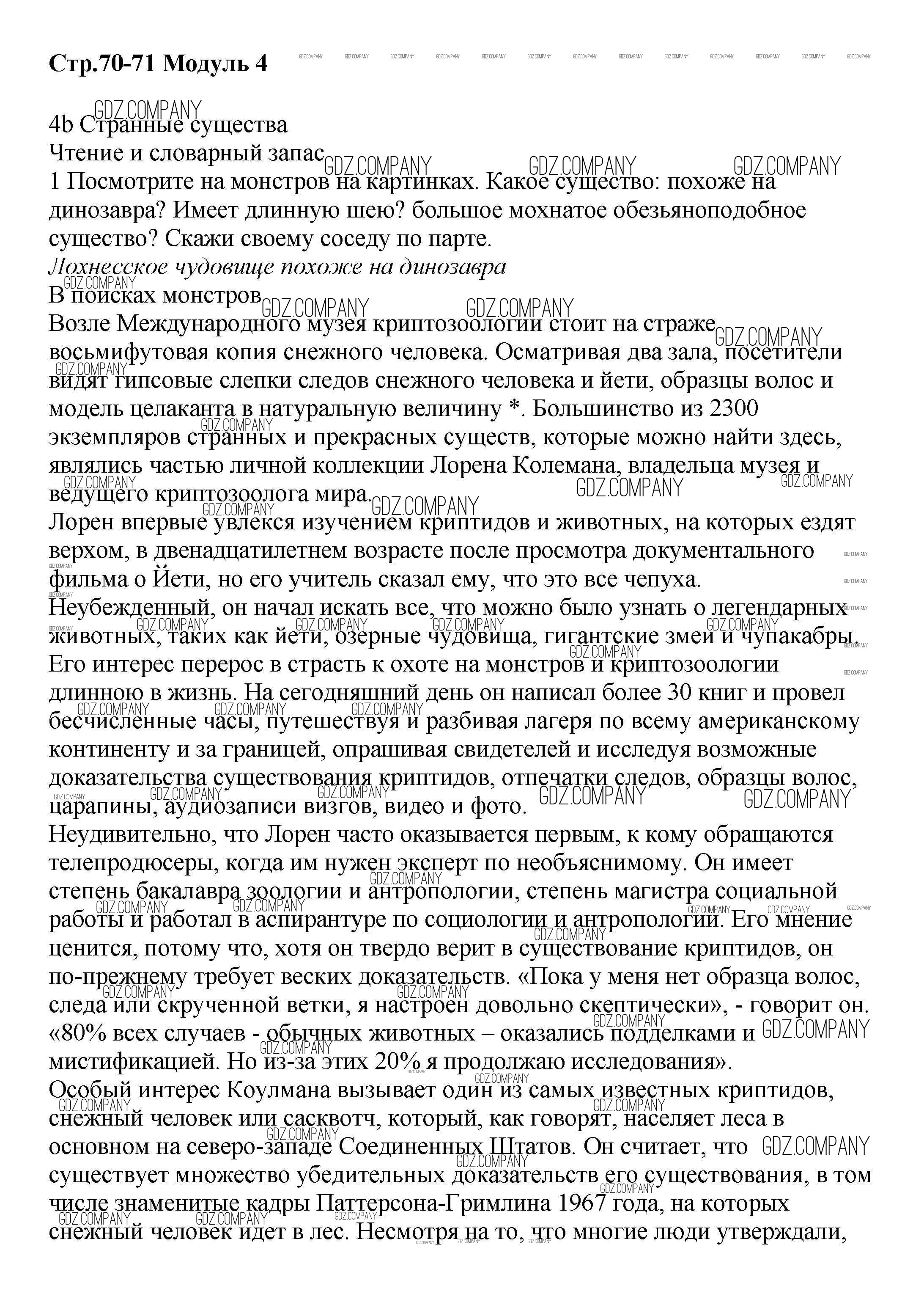 Здесь готовые ответы по Английскому языку за 8 (восьмой) класс от Баранова, Дули, Эванс, Копылова, Мильруд Учебник Starlight Углубленный уровень (издательство: Просвещение от 2016 г.) № стр.70-71 Углубленный уровень