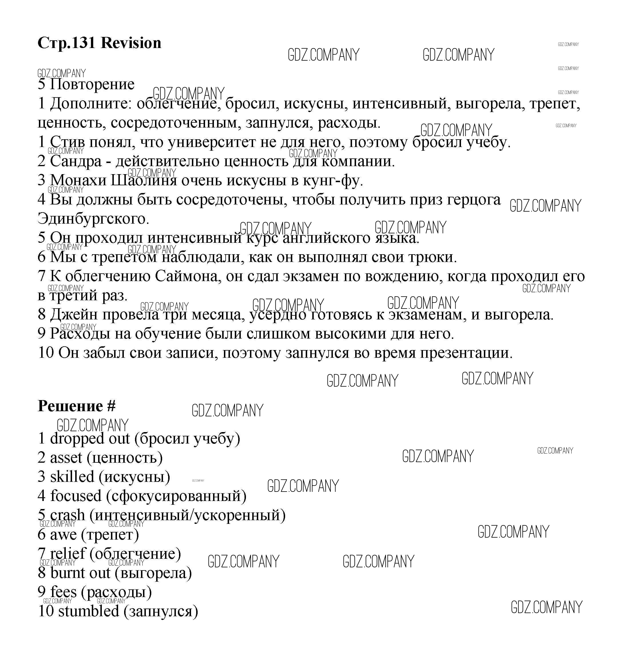Здесь готовые ответы по Английскому языку за 8 (восьмой) класс от Баранова, Дули, Эванс, Копылова, Мильруд Учебник Starlight Углубленный уровень (издательство: Просвещение от 2016 г.) № стр.131 Углубленный уровень