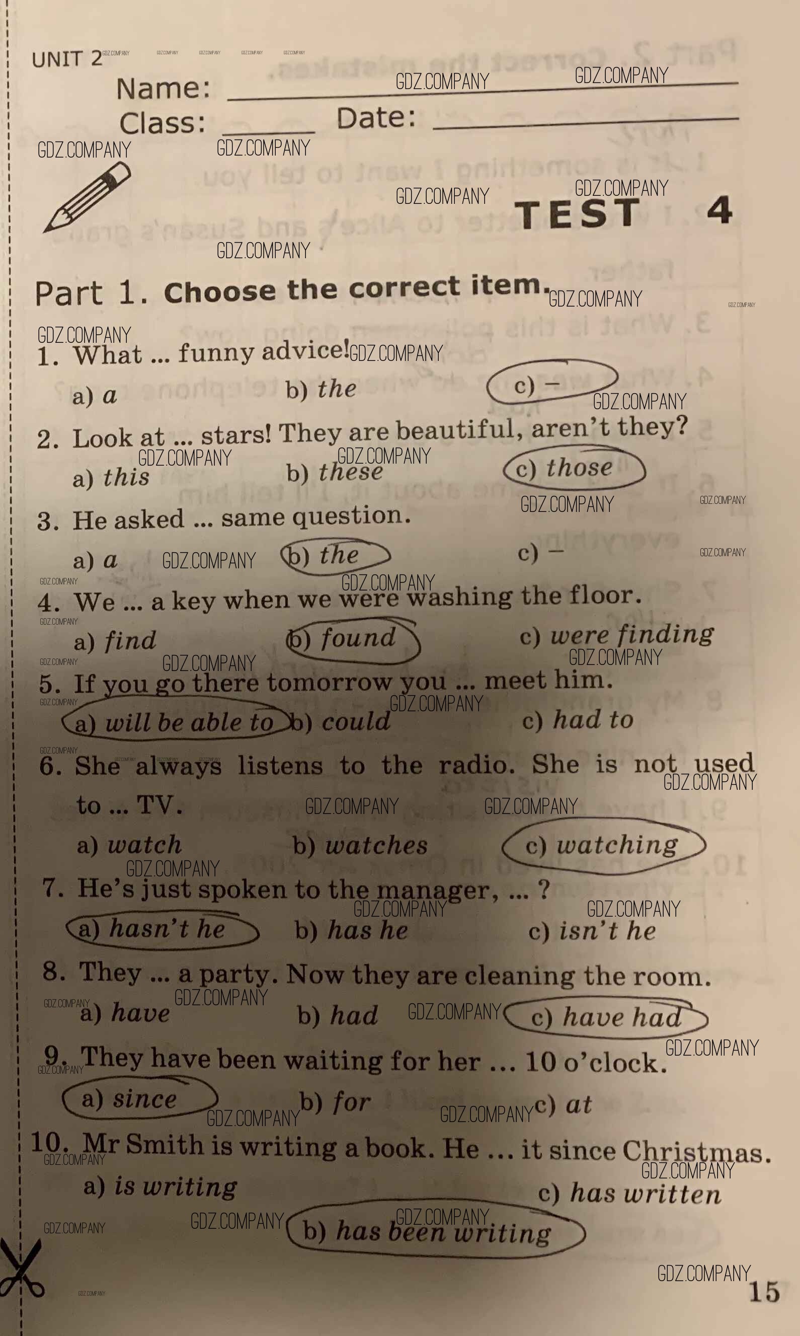 Здесь готовые ответы по Английскому языку за 8 (восьмой) класс от Барашкова Проверочные работы УМК (издательство: Экзамен от 2016 г.) № 15