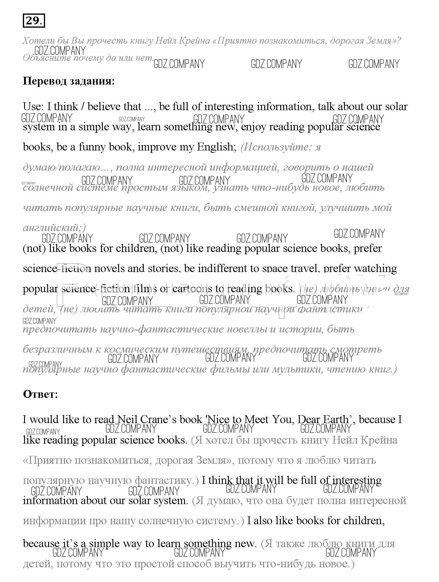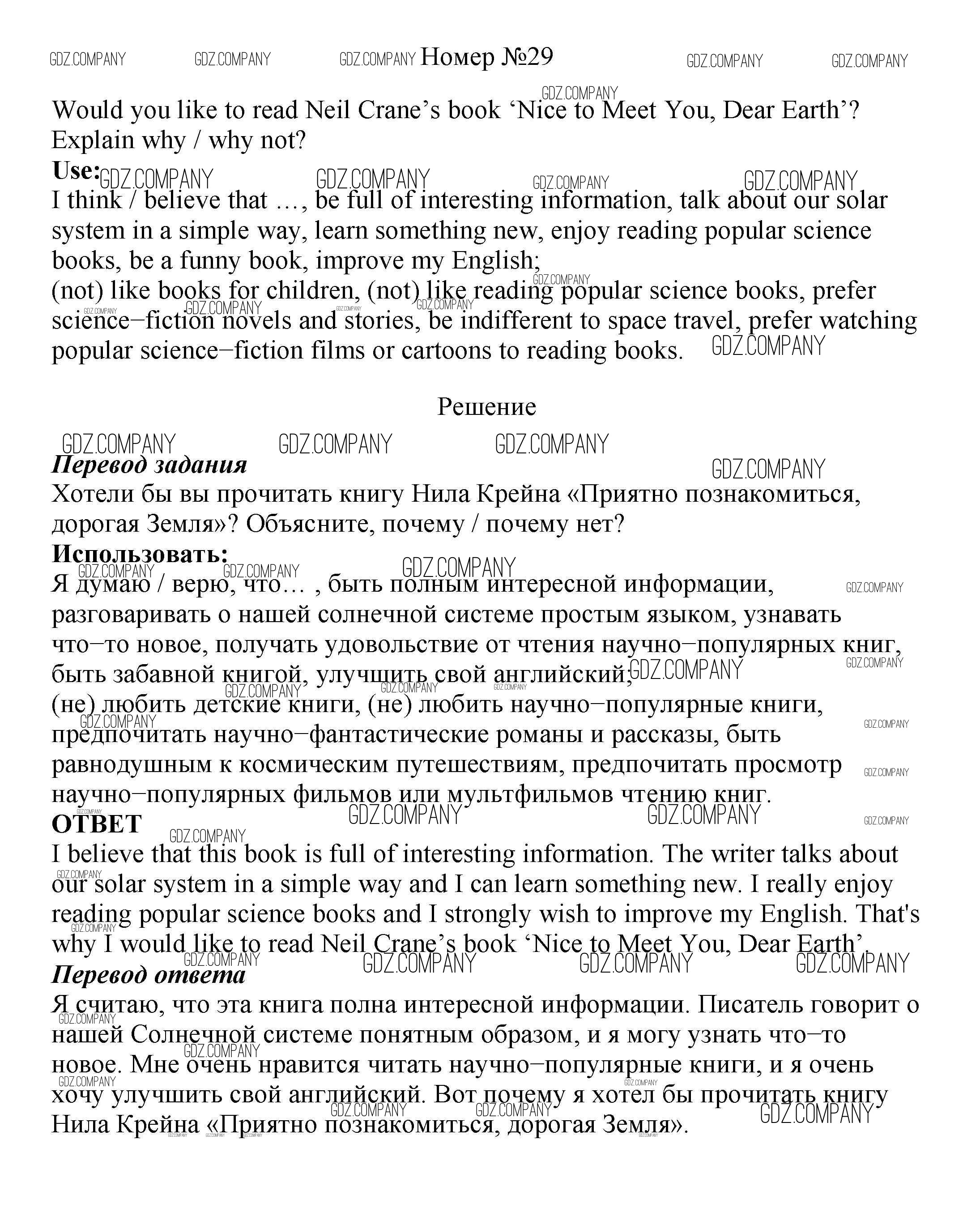 Здесь готовые ответы по Английскому языку за 8 (восьмой) класс от Биболетова, Трубанева Учебник Enjoy English (издательство: Титул от 2015 г.) № 29