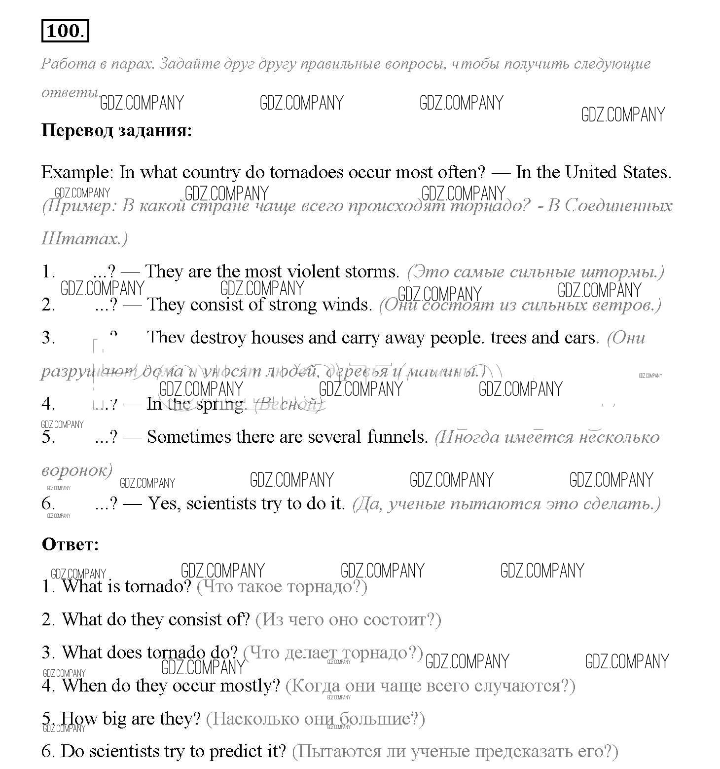 Здесь готовые ответы по Английскому языку за 8 (восьмой) класс от Биболетова, Трубанева Учебник Enjoy English (издательство: Титул от 2015 г.) № 100