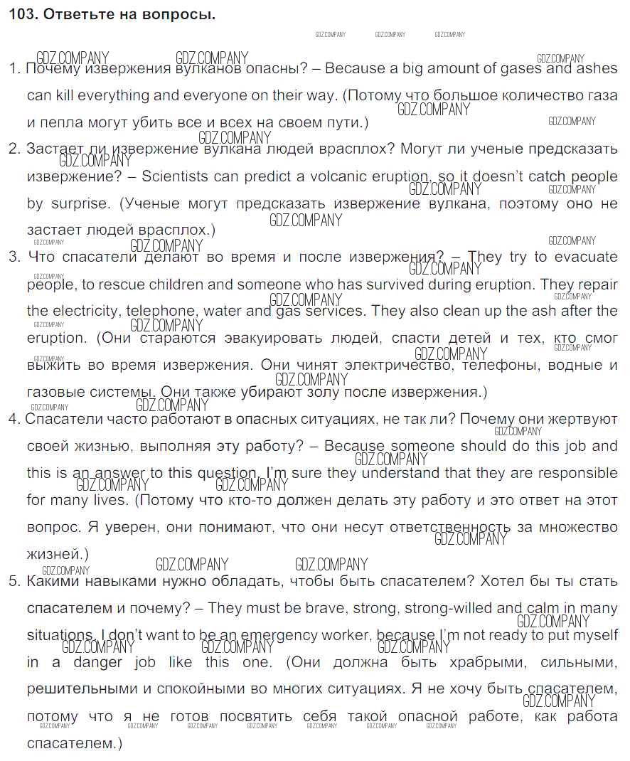 Здесь готовые ответы по Английскому языку за 8 (восьмой) класс от Биболетова, Трубанева Учебник Enjoy English (издательство: Титул от 2015 г.) № 103