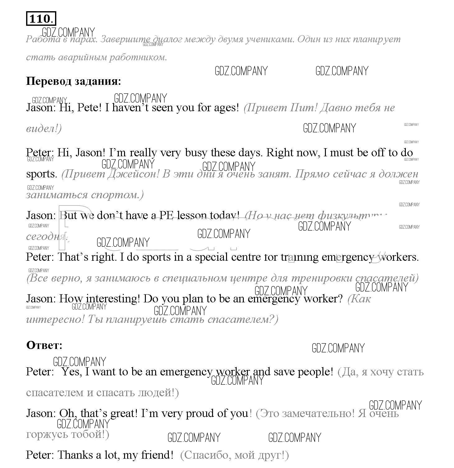 Здесь готовые ответы по Английскому языку за 8 (восьмой) класс от Биболетова, Трубанева Учебник Enjoy English (издательство: Титул от 2015 г.) № 110