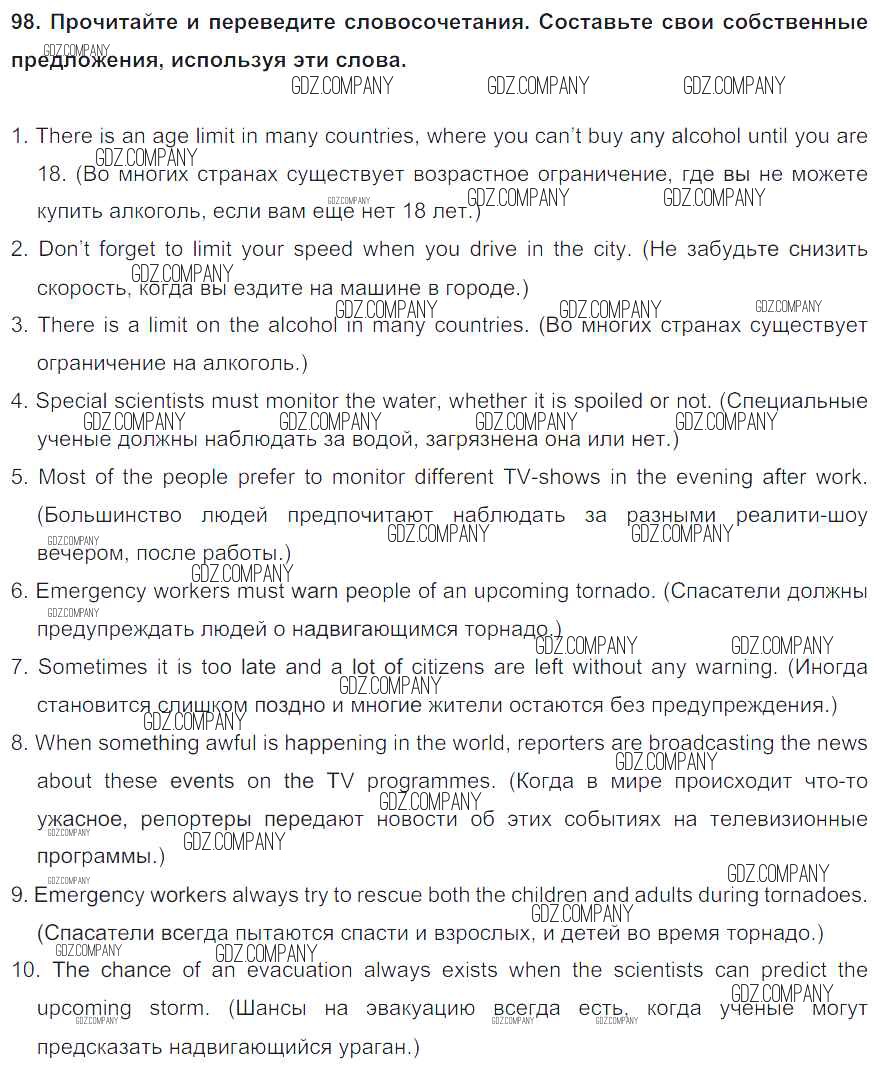 Здесь готовые ответы по Английскому языку за 8 (восьмой) класс от Биболетова, Трубанева Учебник Enjoy English (издательство: Титул от 2015 г.) № 98