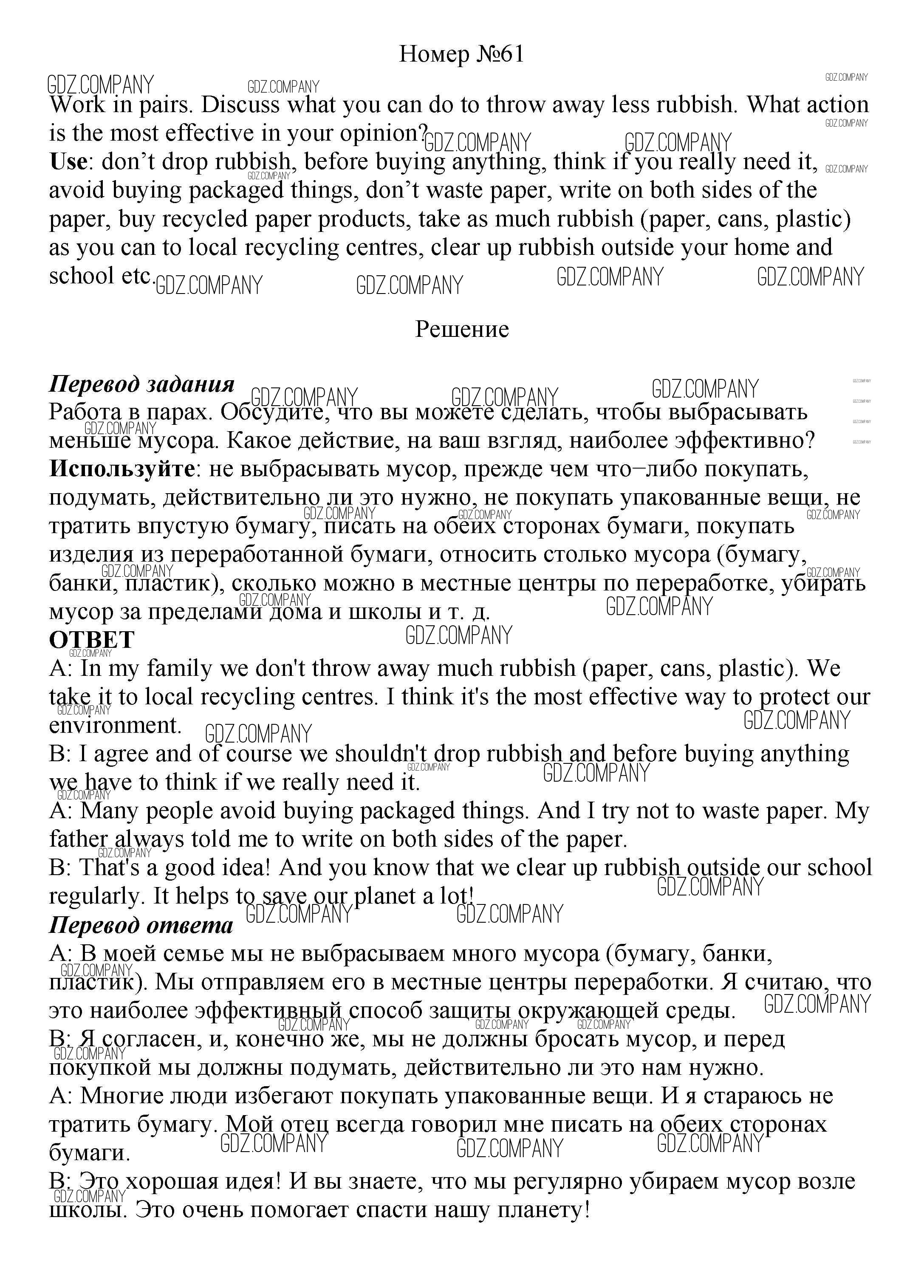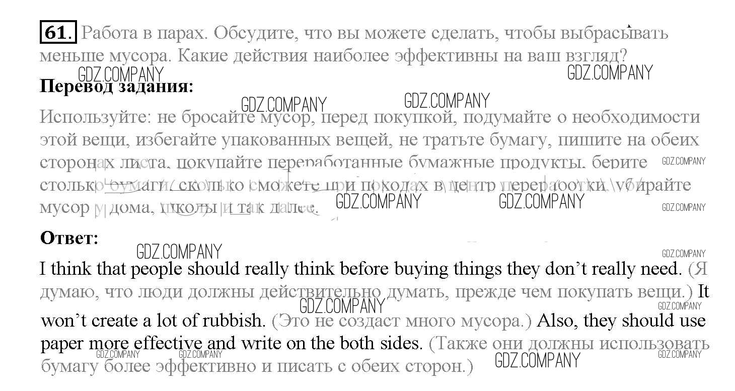 Здесь готовые ответы по Английскому языку за 8 (восьмой) класс от Биболетова, Трубанева Учебник Enjoy English (издательство: Титул от 2015 г.) № 61