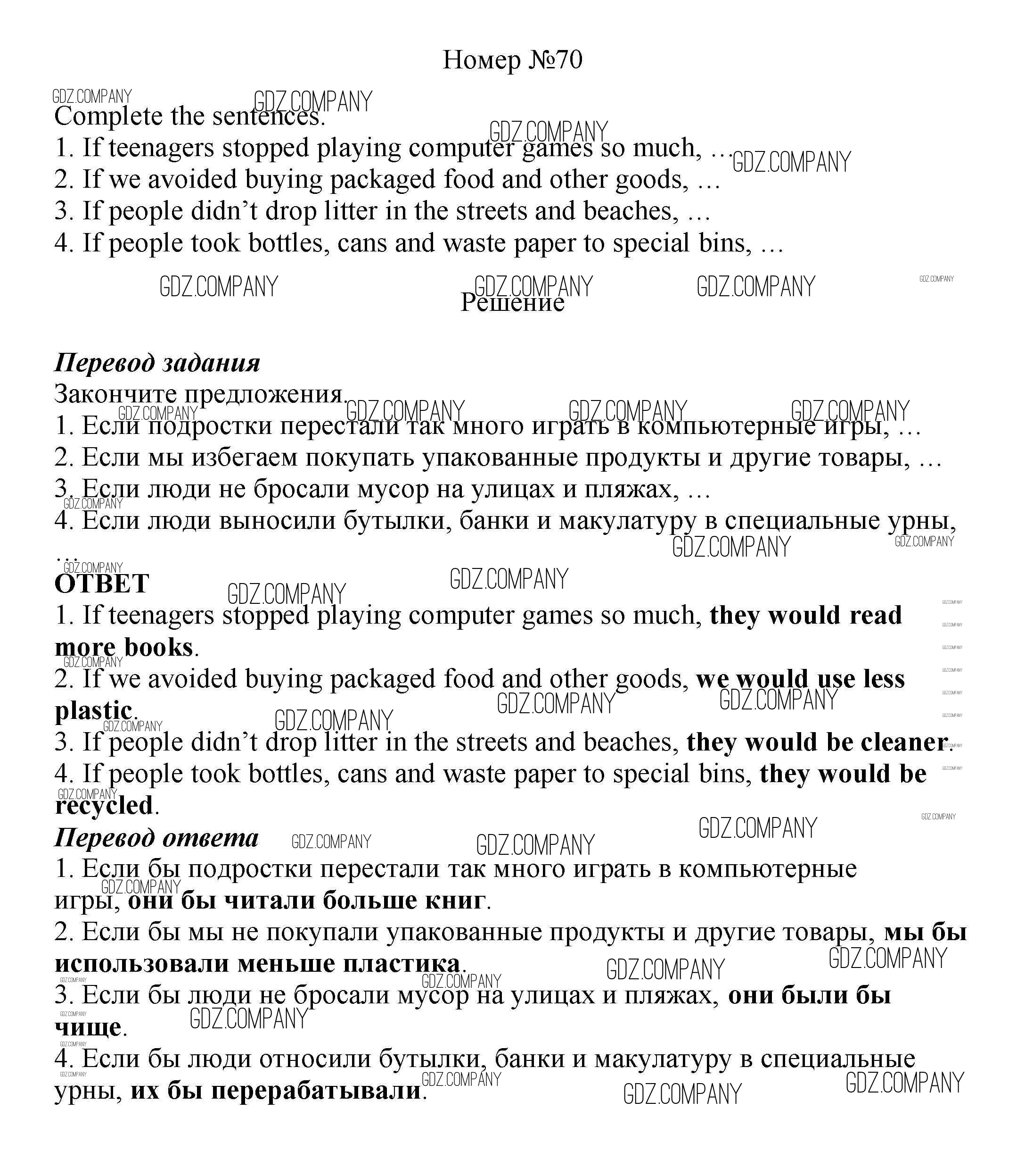 Здесь готовые ответы по Английскому языку за 8 (восьмой) класс от Биболетова, Трубанева Учебник Enjoy English (издательство: Титул от 2015 г.) № 70
