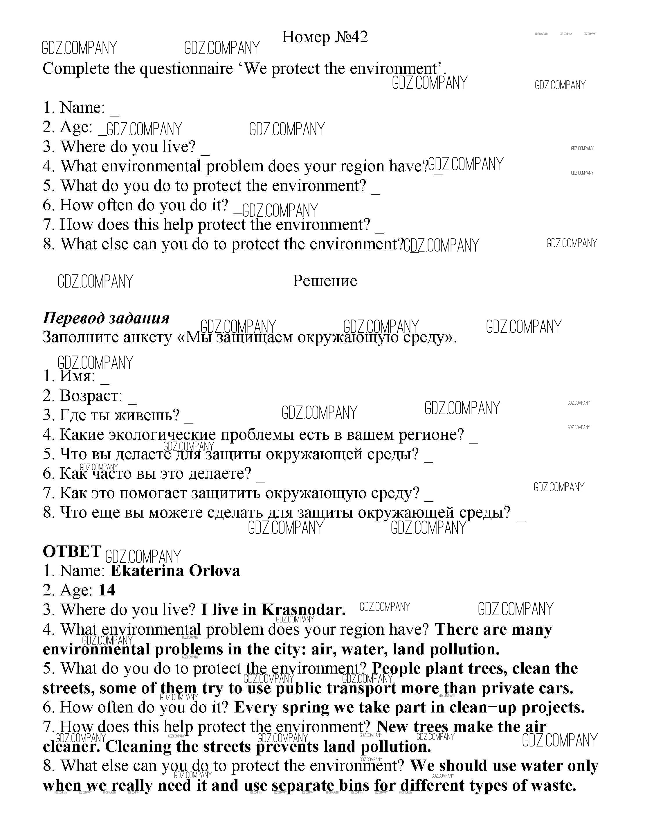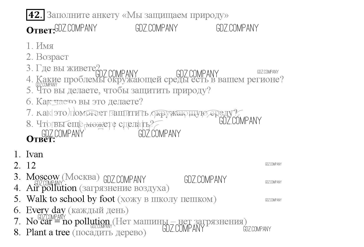 Здесь готовые ответы по Английскому языку за 8 (восьмой) класс от Биболетова, Трубанева Учебник Enjoy English (издательство: Титул от 2015 г.) № 42