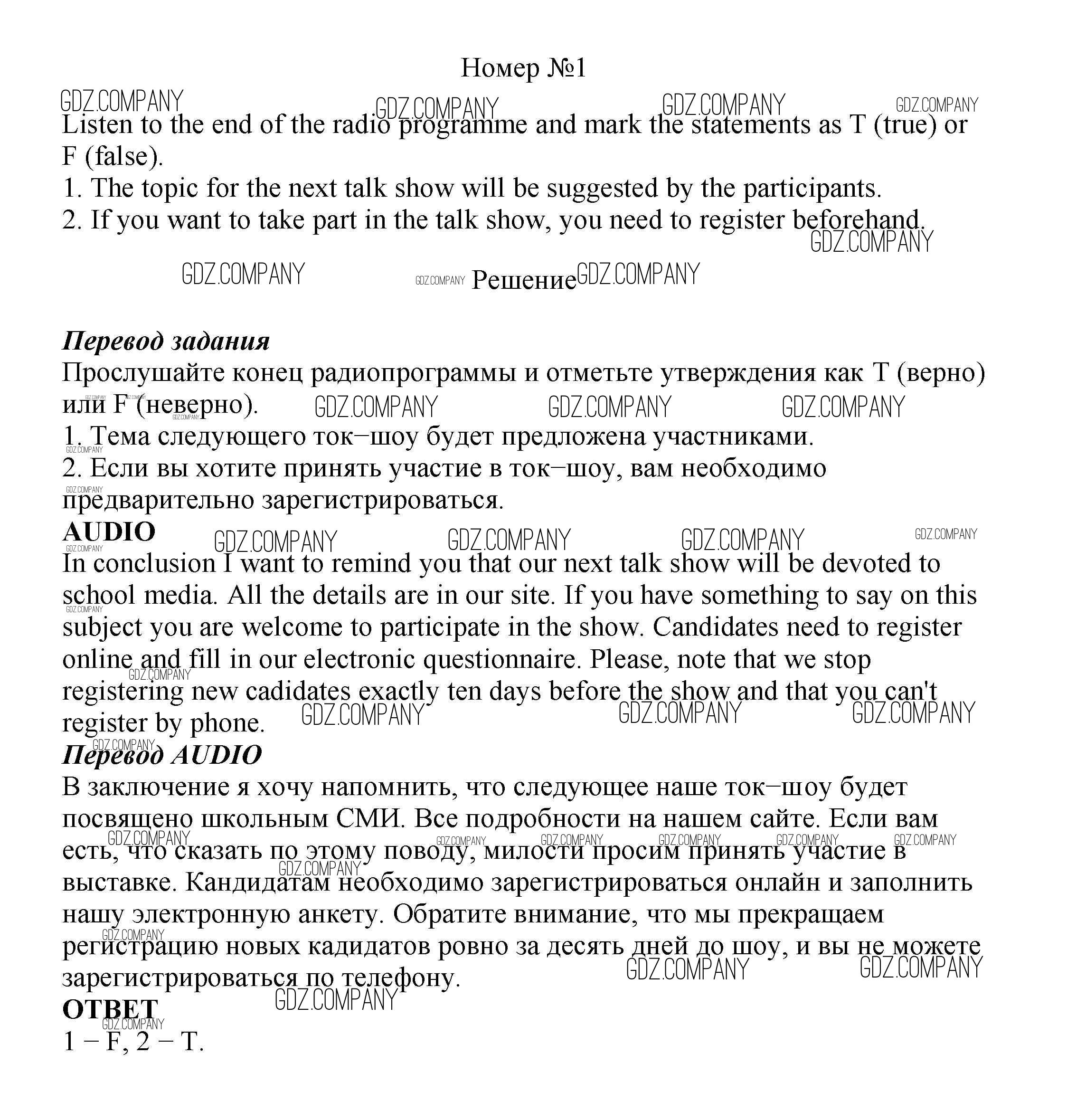 Здесь готовые ответы по Английскому языку за 8 (восьмой) класс от Биболетова, Трубанева Учебник Enjoy English (издательство: Титул от 2015 г.) № 1