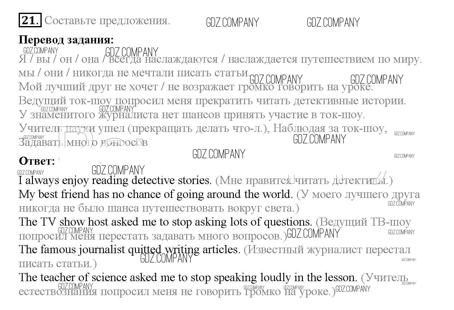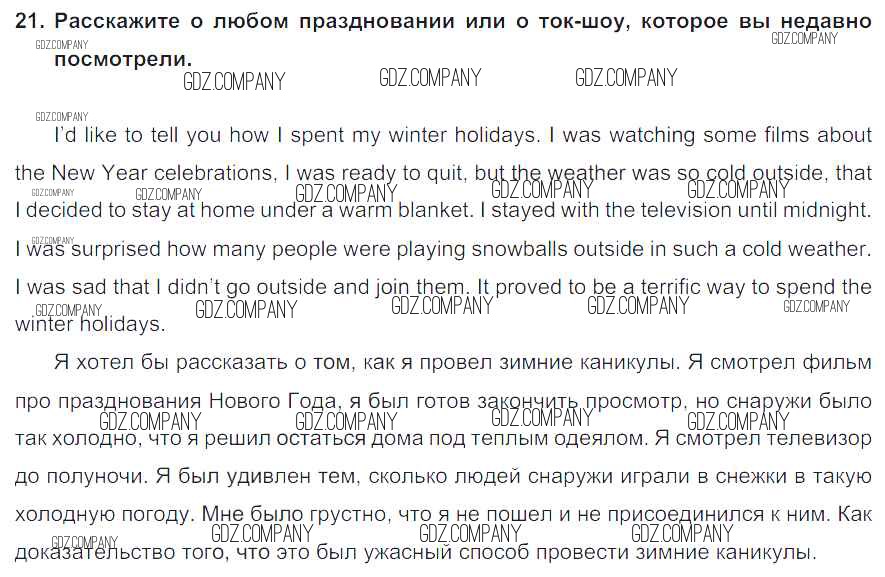 Здесь готовые ответы по Английскому языку за 8 (восьмой) класс от Биболетова, Трубанева Учебник Enjoy English (издательство: Титул от 2015 г.) № 21