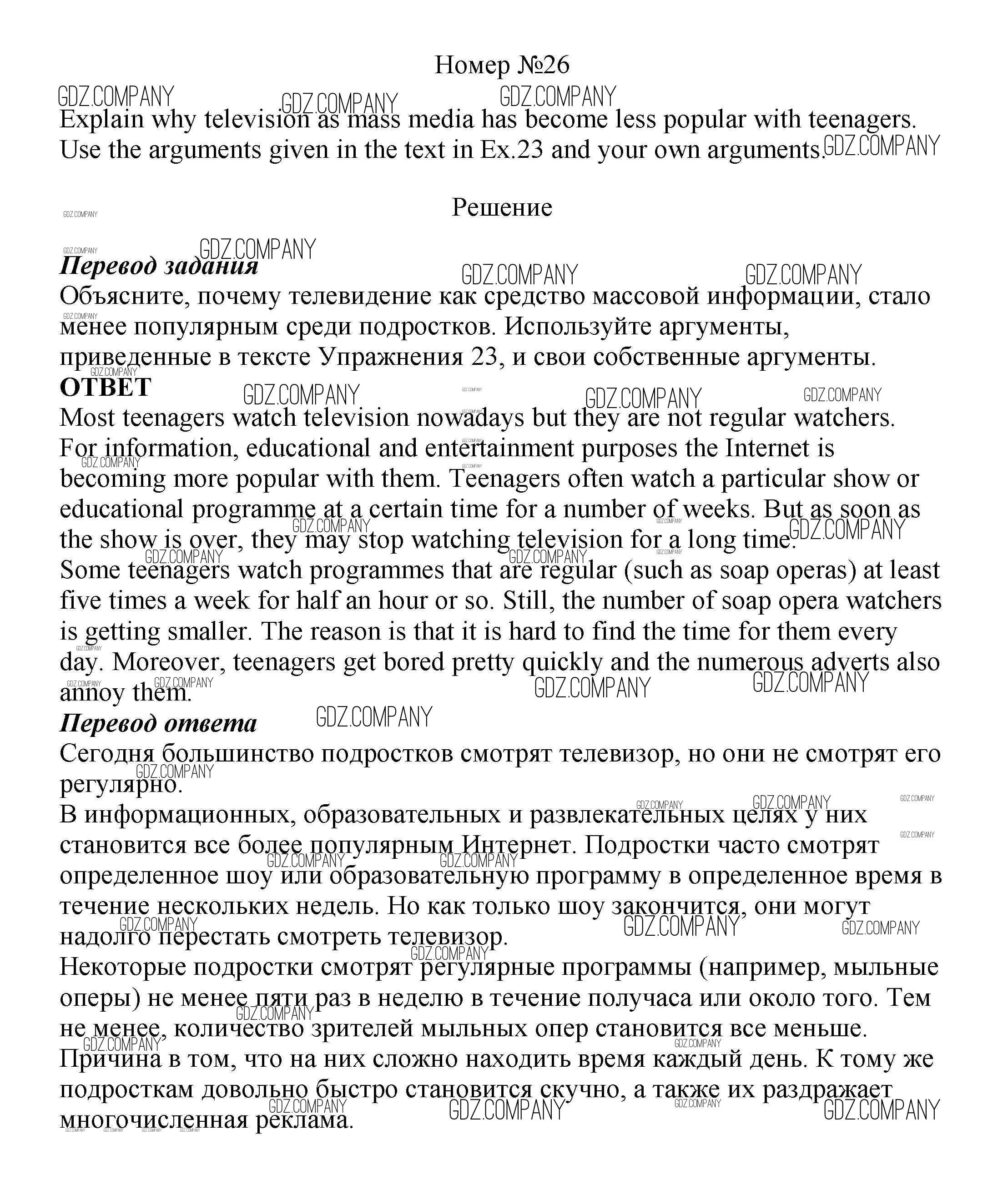 Здесь готовые ответы по Английскому языку за 8 (восьмой) класс от Биболетова, Трубанева Учебник Enjoy English (издательство: Титул от 2015 г.) № 26