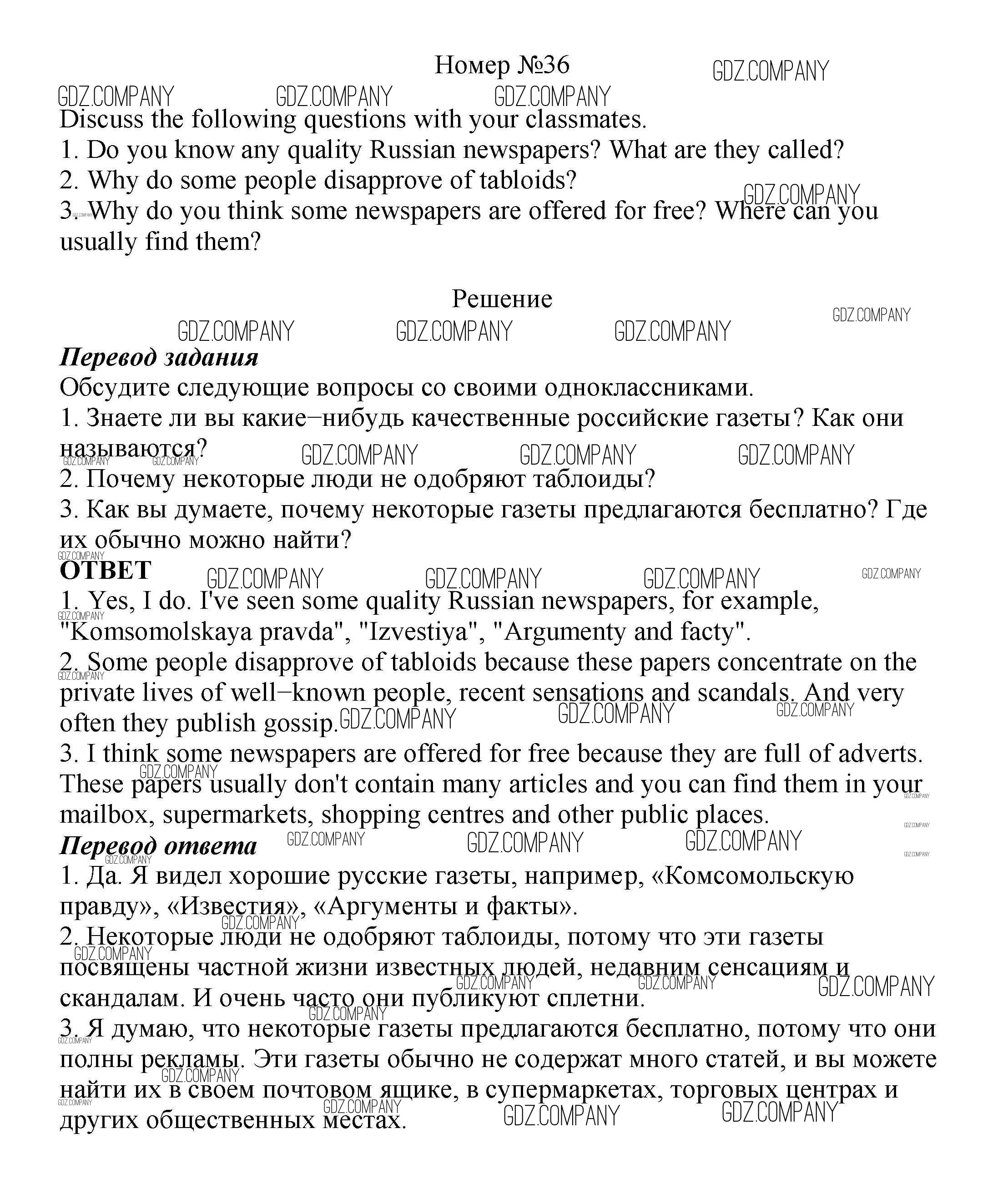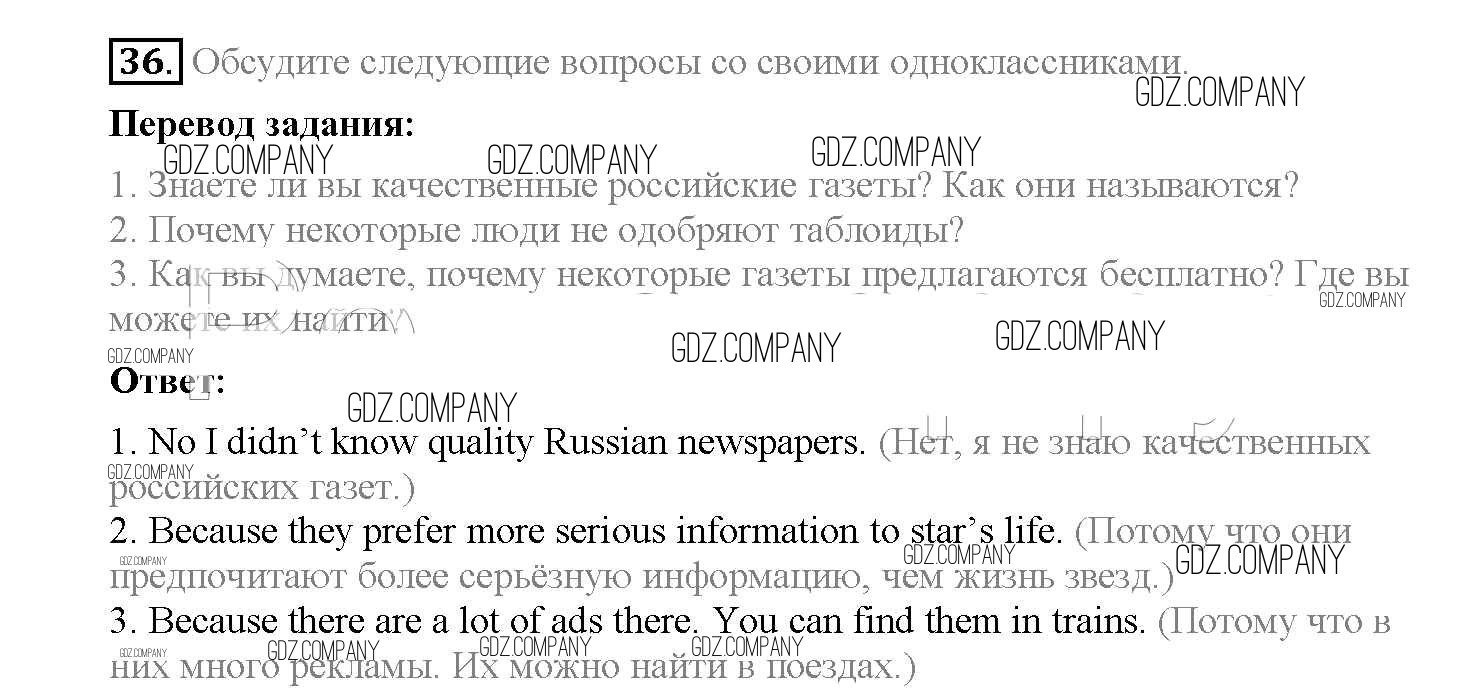 Здесь готовые ответы по Английскому языку за 8 (восьмой) класс от Биболетова, Трубанева Учебник Enjoy English (издательство: Титул от 2015 г.) № 36