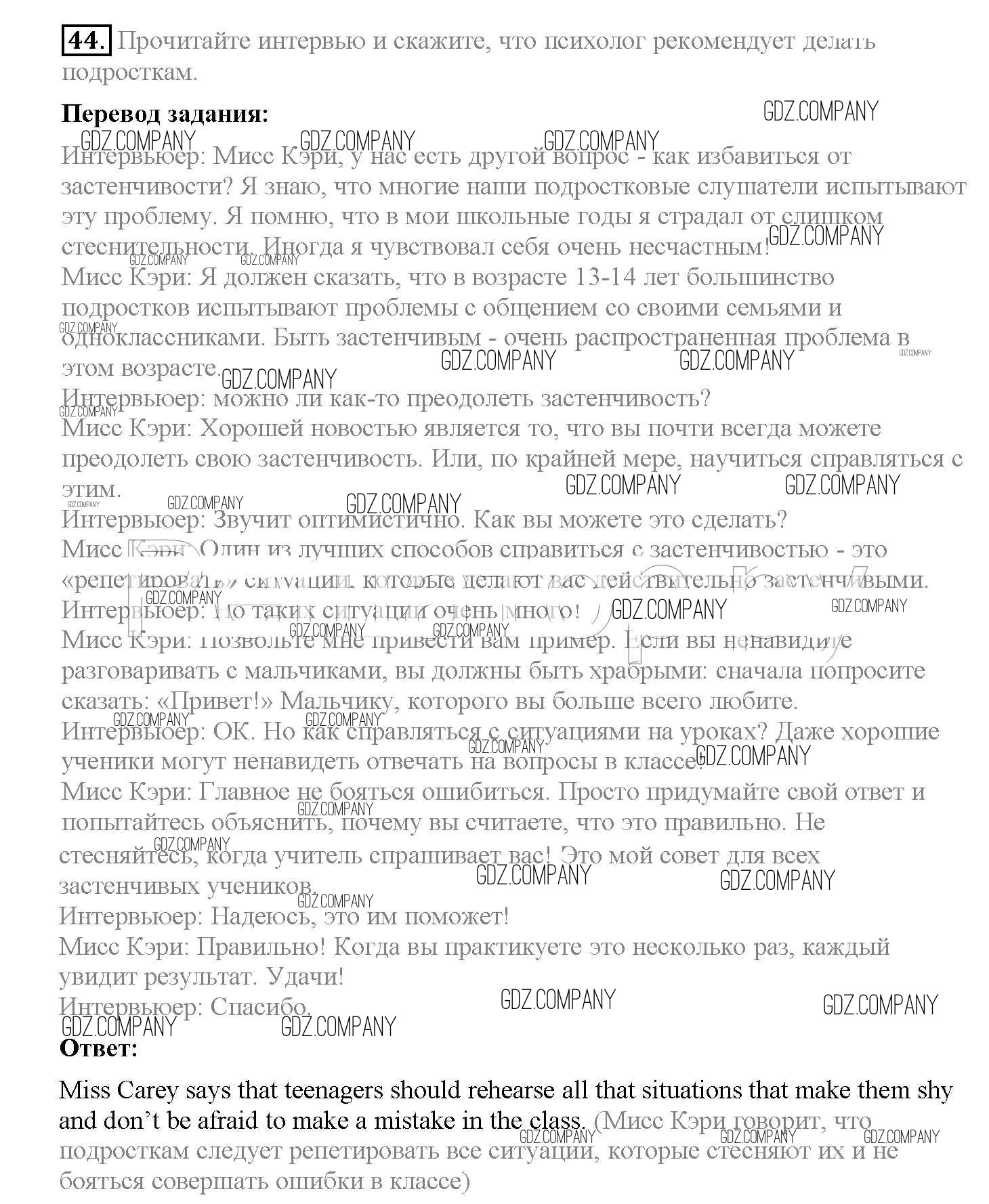 Здесь готовые ответы по Английскому языку за 8 (восьмой) класс от Биболетова, Трубанева Учебник Enjoy English (издательство: Титул от 2015 г.) № 44