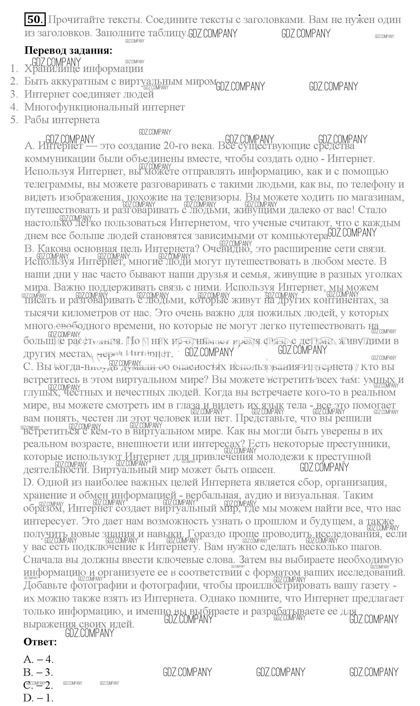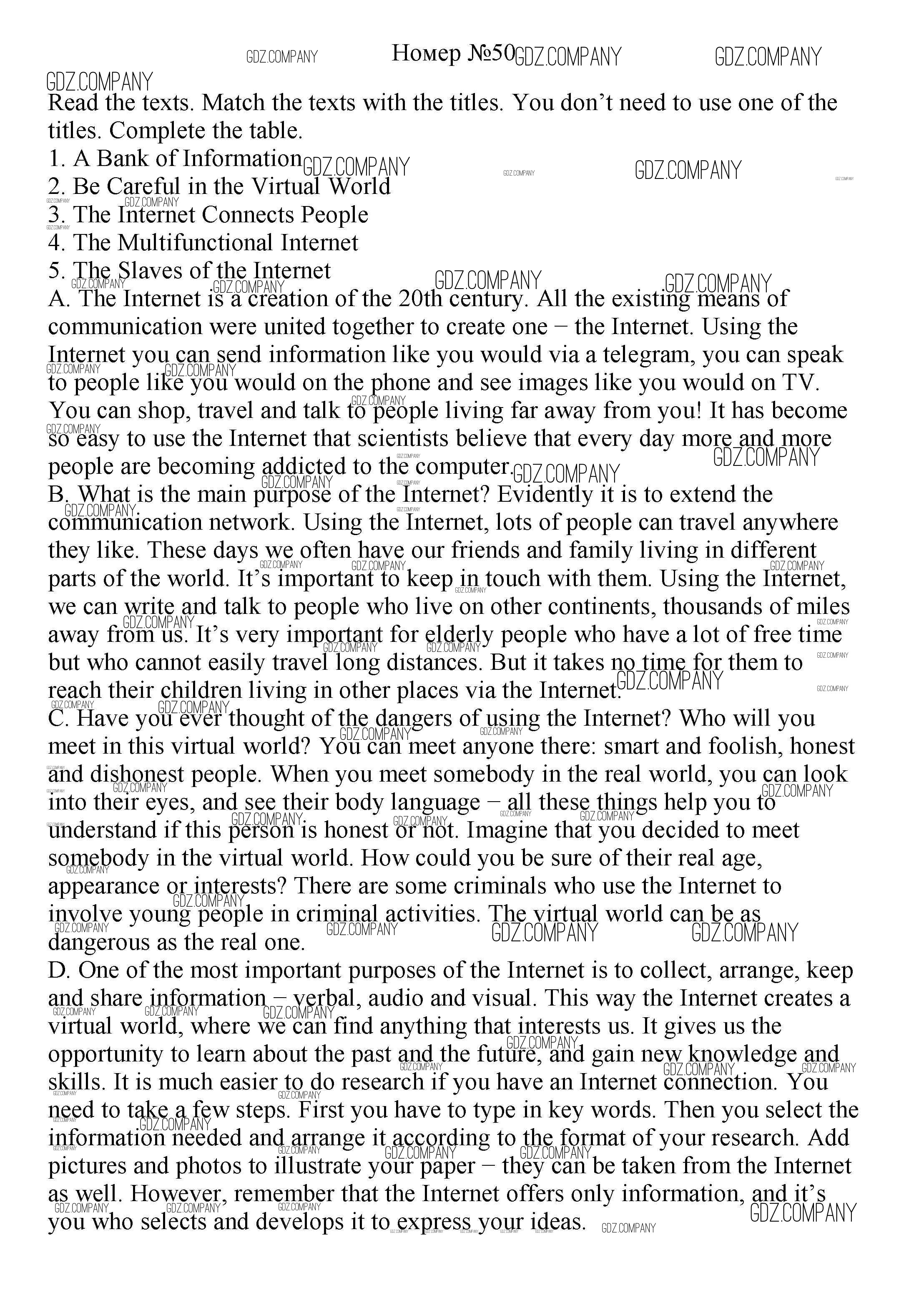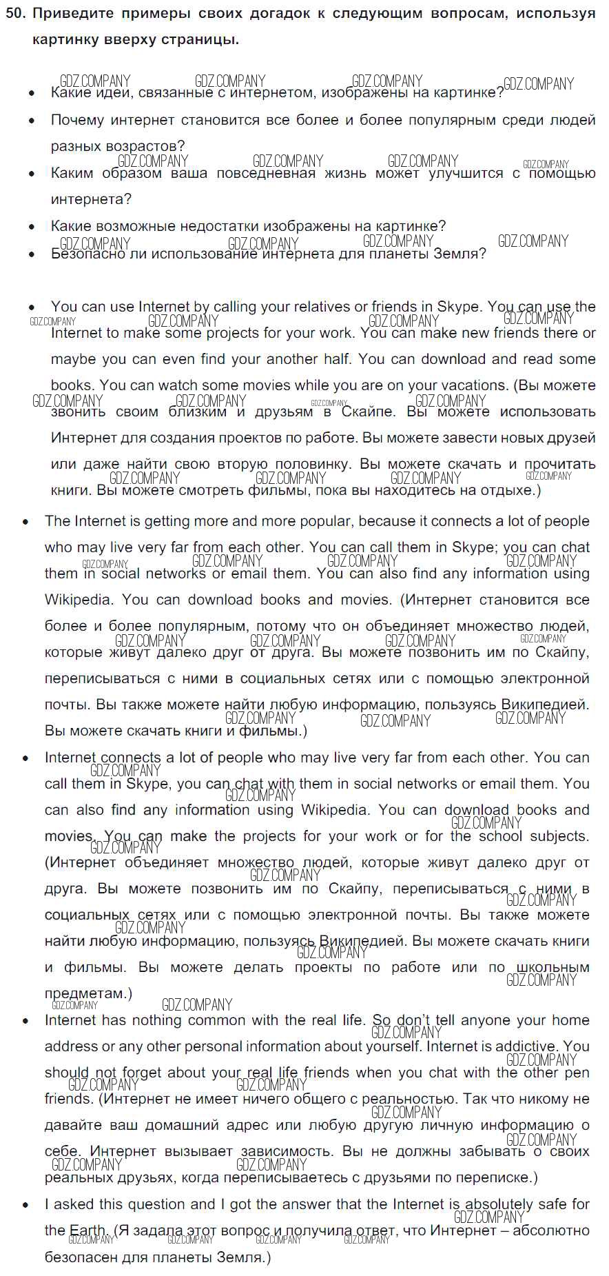 Здесь готовые ответы по Английскому языку за 8 (восьмой) класс от Биболетова, Трубанева Учебник Enjoy English (издательство: Титул от 2015 г.) № 50