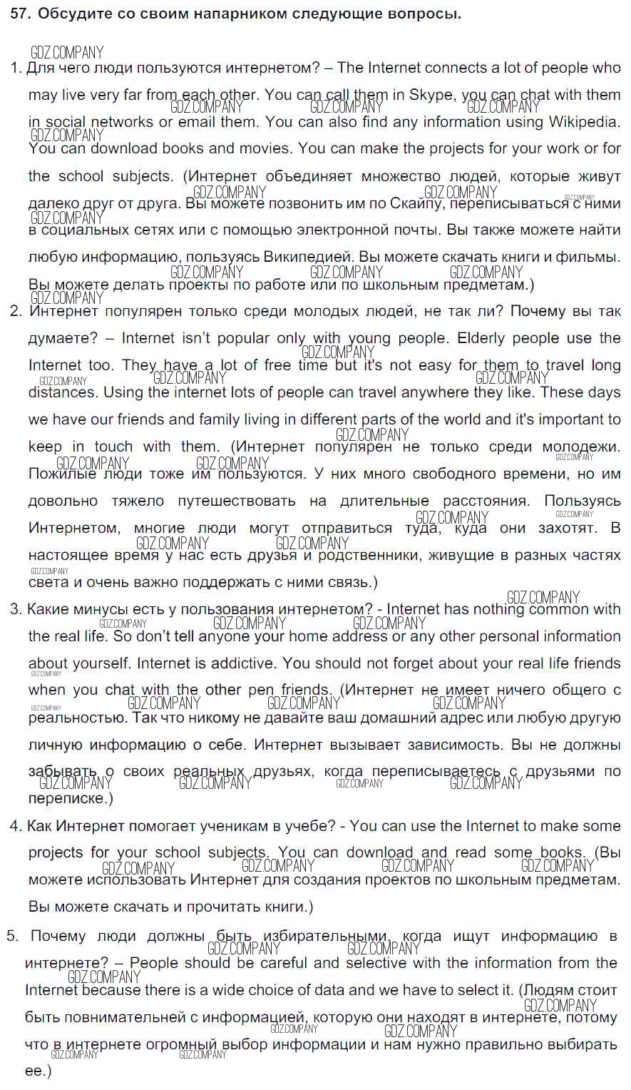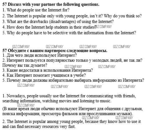 Здесь готовые ответы по Английскому языку за 8 (восьмой) класс от Биболетова, Трубанева Учебник Enjoy English (издательство: Титул от 2015 г.) № 57