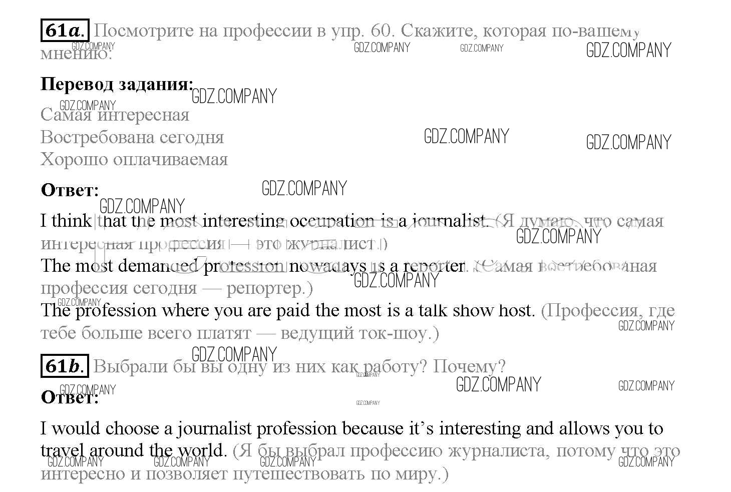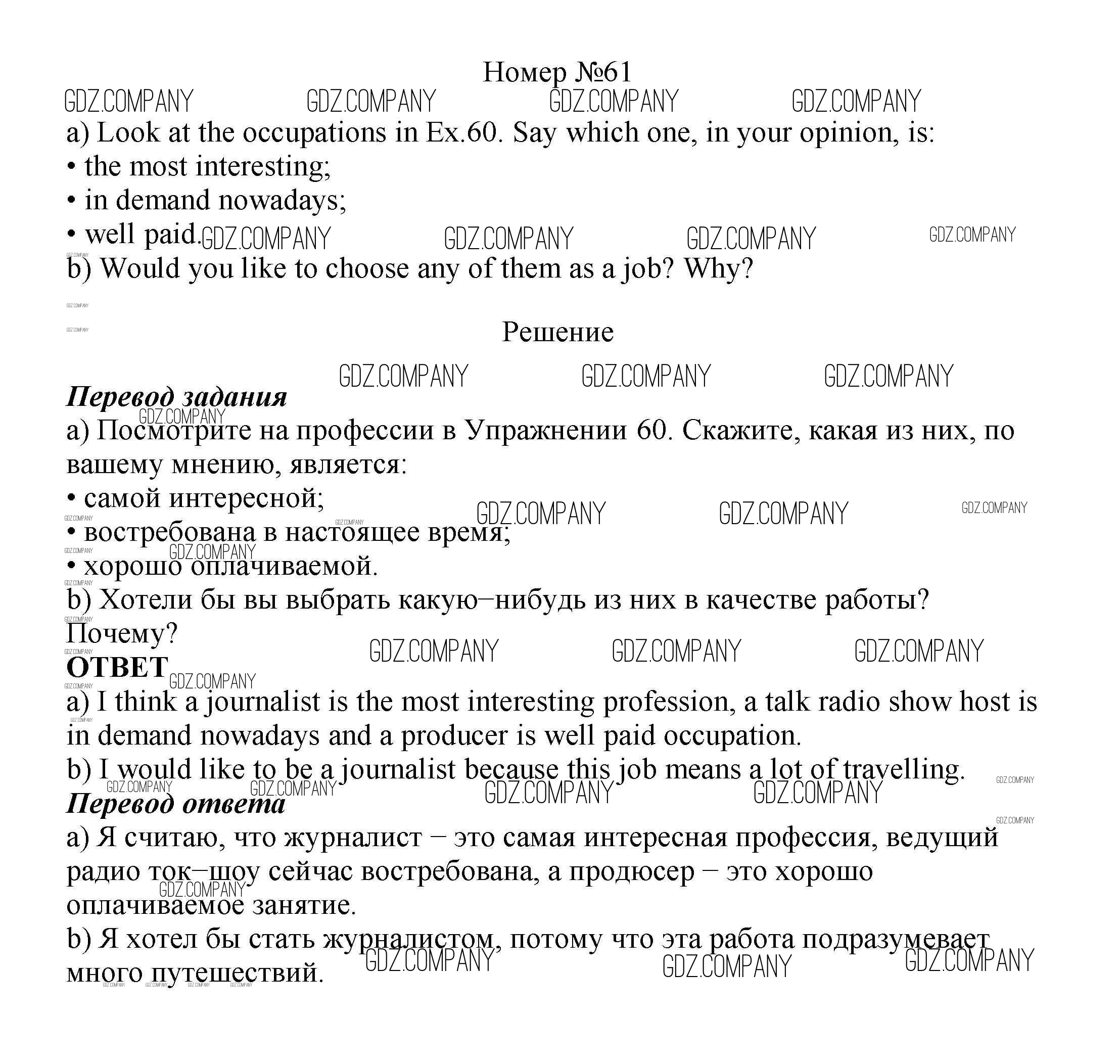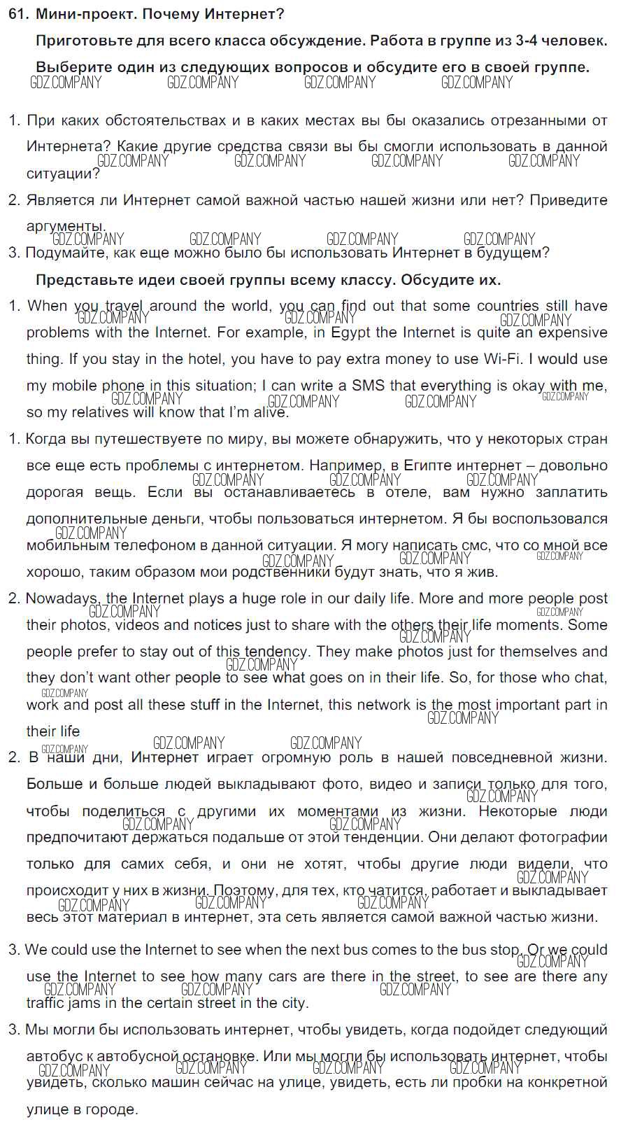 Здесь готовые ответы по Английскому языку за 8 (восьмой) класс от Биболетова, Трубанева Учебник Enjoy English (издательство: Титул от 2015 г.) № 61
