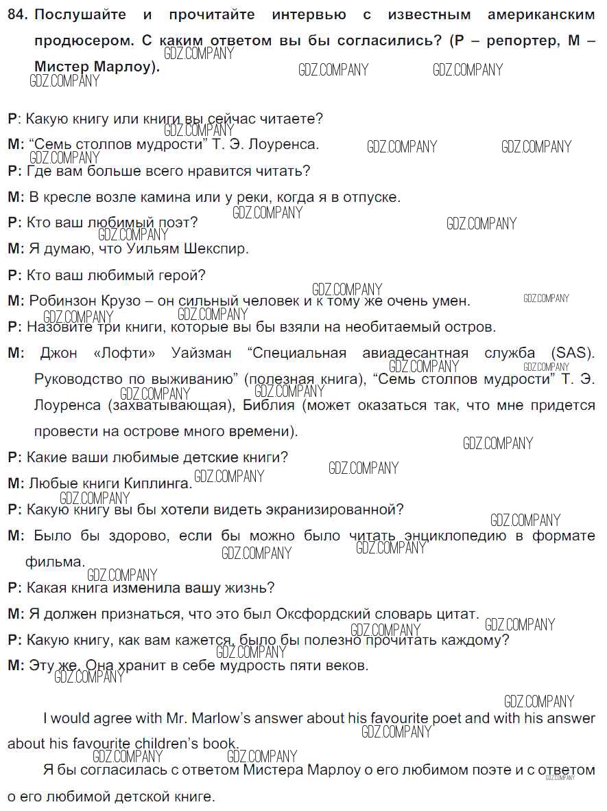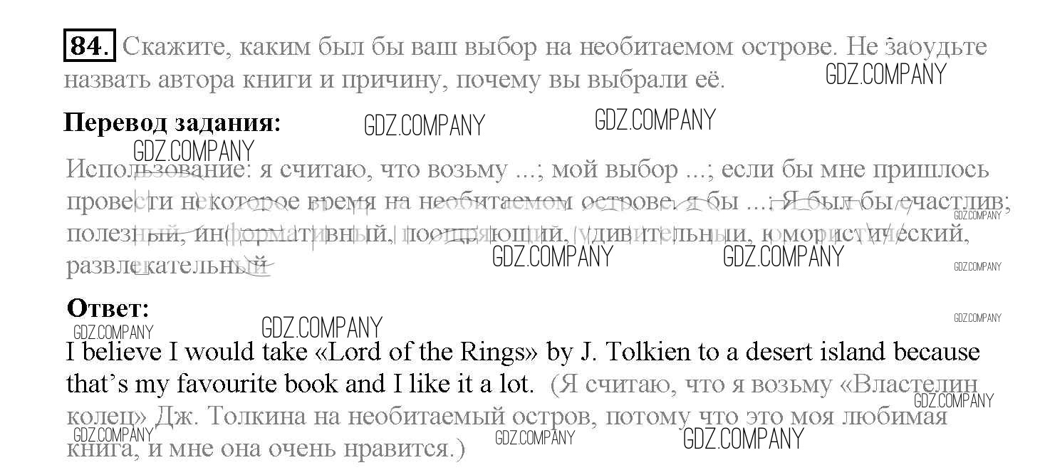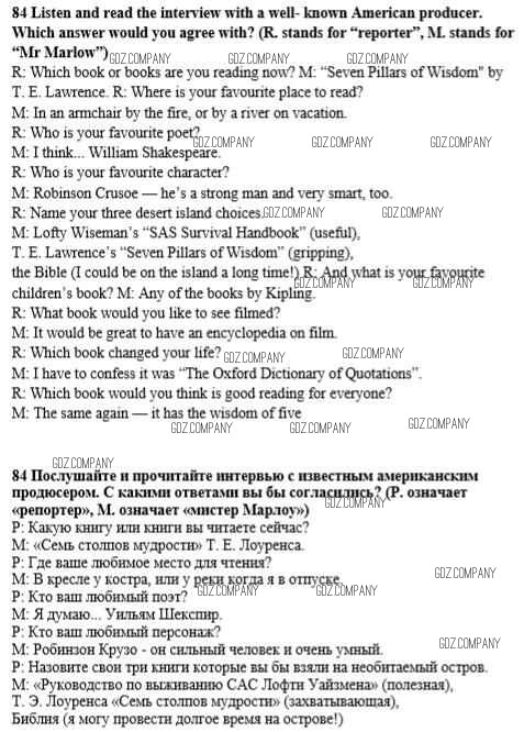 Здесь готовые ответы по Английскому языку за 8 (восьмой) класс от Биболетова, Трубанева Учебник Enjoy English (издательство: Титул от 2015 г.) № 84