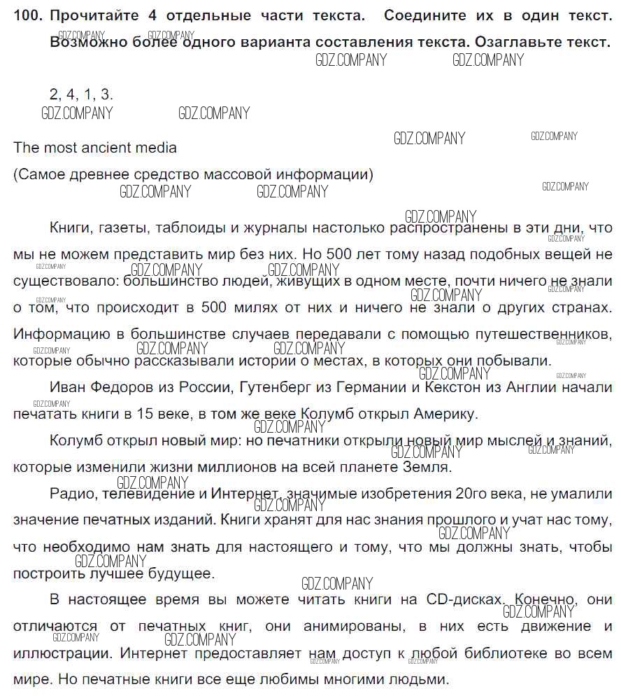 Здесь готовые ответы по Английскому языку за 8 (восьмой) класс от Биболетова, Трубанева Учебник Enjoy English (издательство: Титул от 2015 г.) № 100