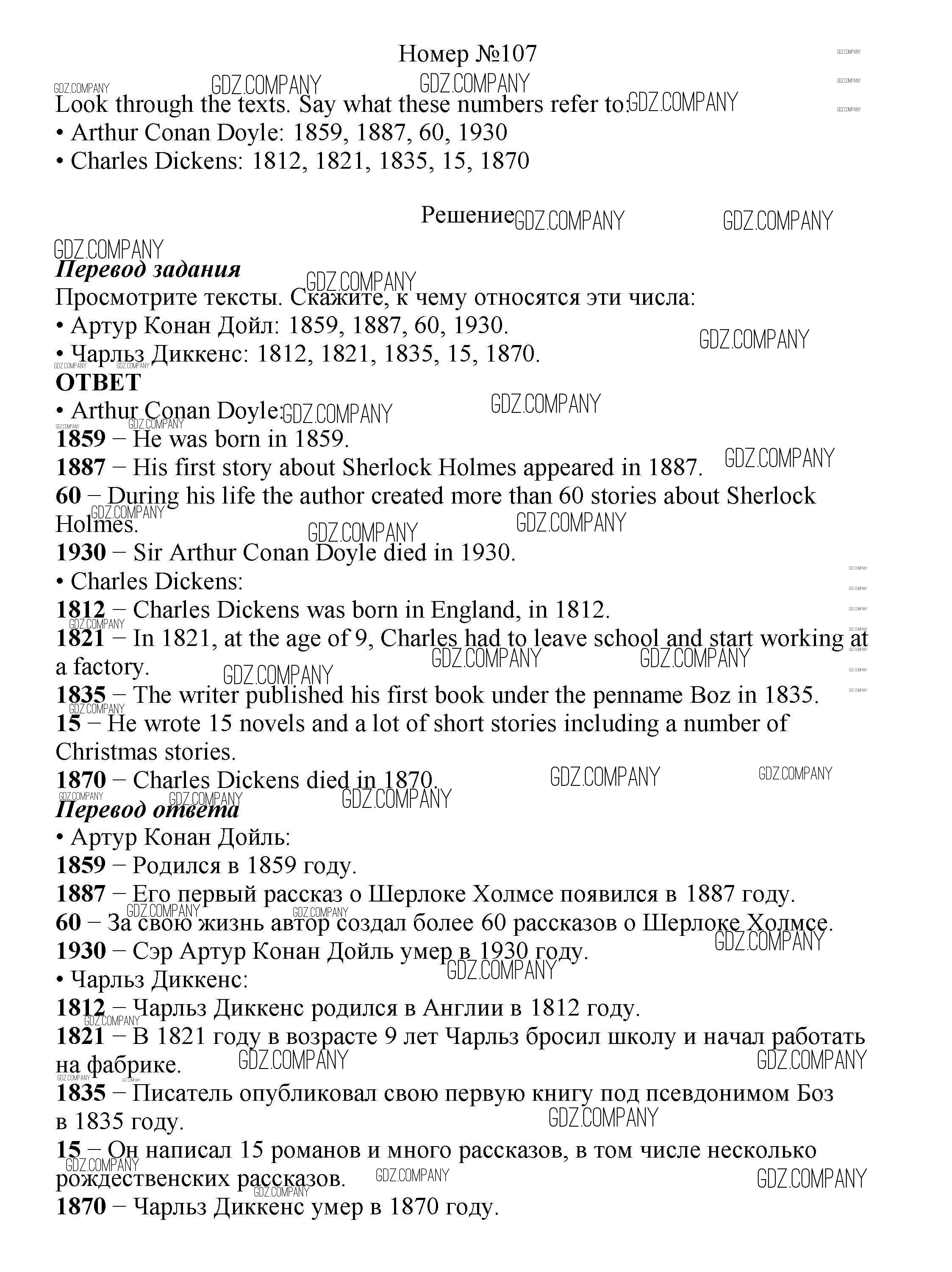 Здесь готовые ответы по Английскому языку за 8 (восьмой) класс от Биболетова, Трубанева Учебник Enjoy English (издательство: Титул от 2015 г.) № 107