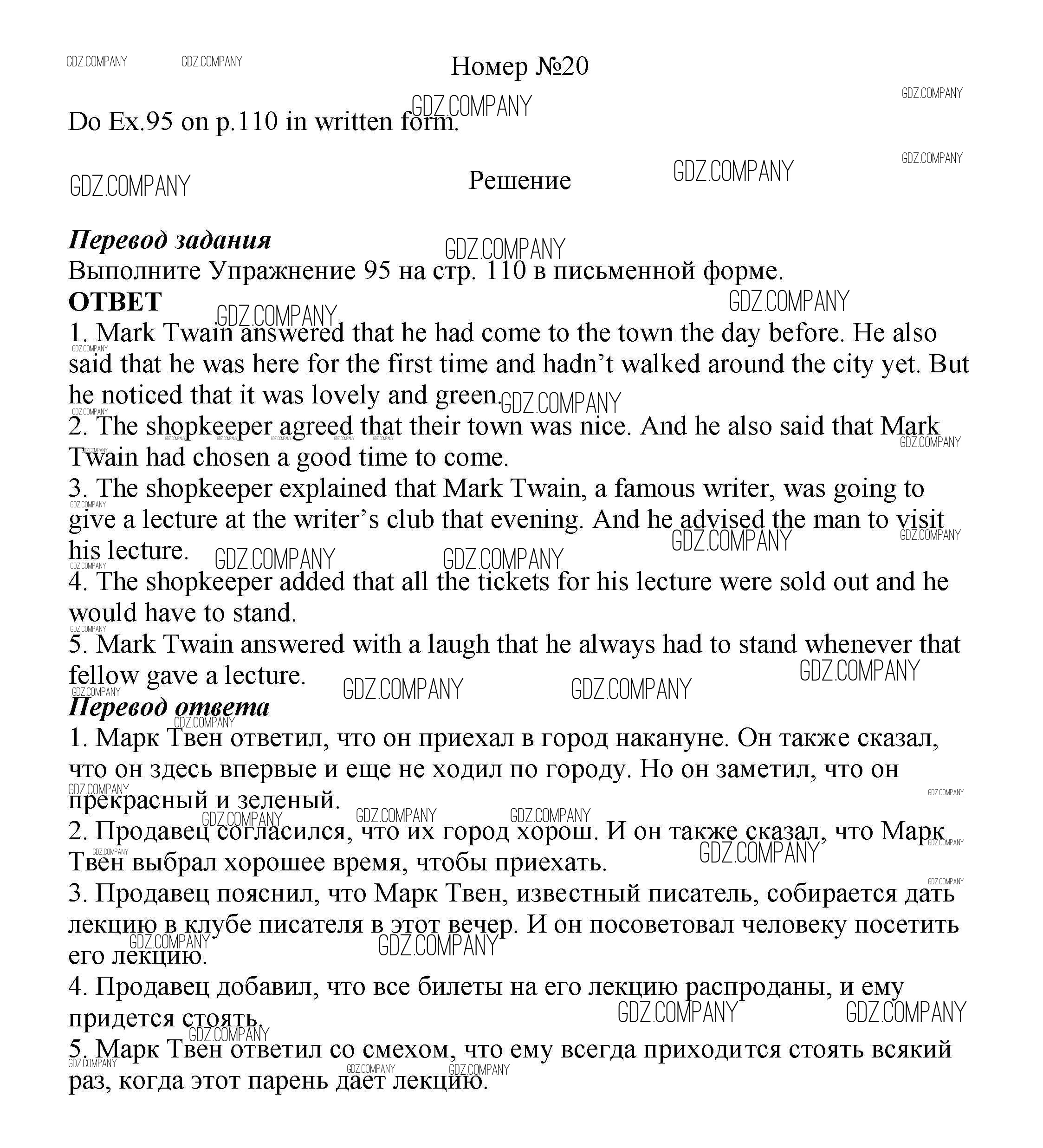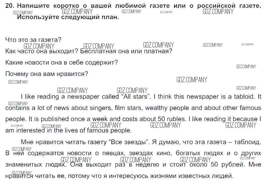 Здесь готовые ответы по Английскому языку за 8 (восьмой) класс от Биболетова, Трубанева Учебник Enjoy English (издательство: Титул от 2015 г.) № 20