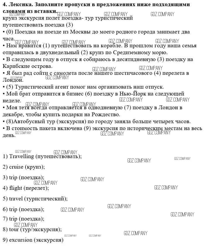 Здесь готовые ответы по Английскому языку за 8 (восьмой) класс от Кузовлев, Перегудова, Лапа, Костина, Дуванова, Кобец, Кузнецова Рабочая тетрадь (издательство: Просвещение от 2014 г.) № 4