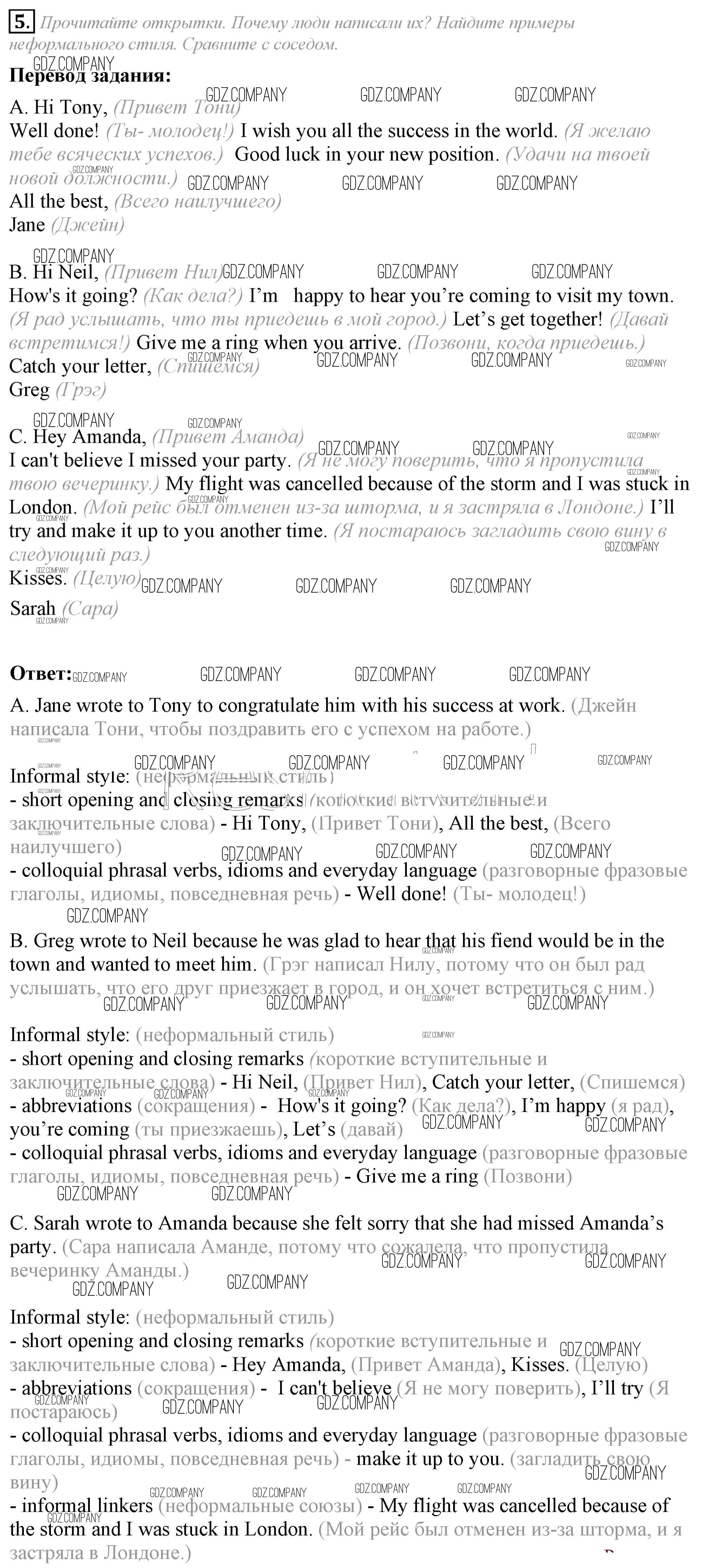Здесь готовые ответы по Английскому языку за 8 (восьмой) класс от Ваулина, Дули, Эванс, Подоляко Учебник Spotlight (издательство: Просвещение от 2015 г.) № 5