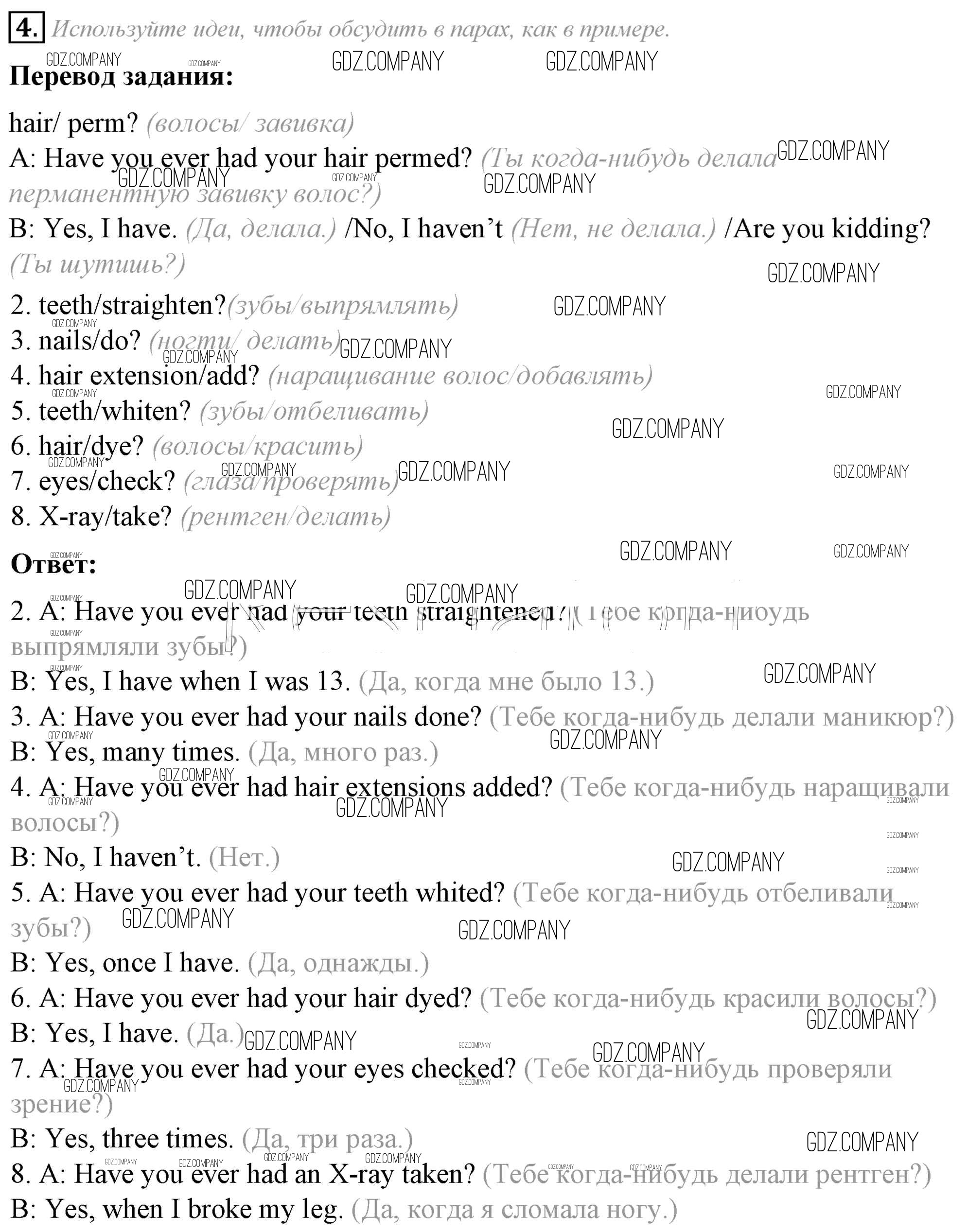 Здесь готовые ответы по Английскому языку за 8 (восьмой) класс от Ваулина, Дули, Эванс, Подоляко Учебник Spotlight (издательство: Просвещение от 2015 г.) № 4