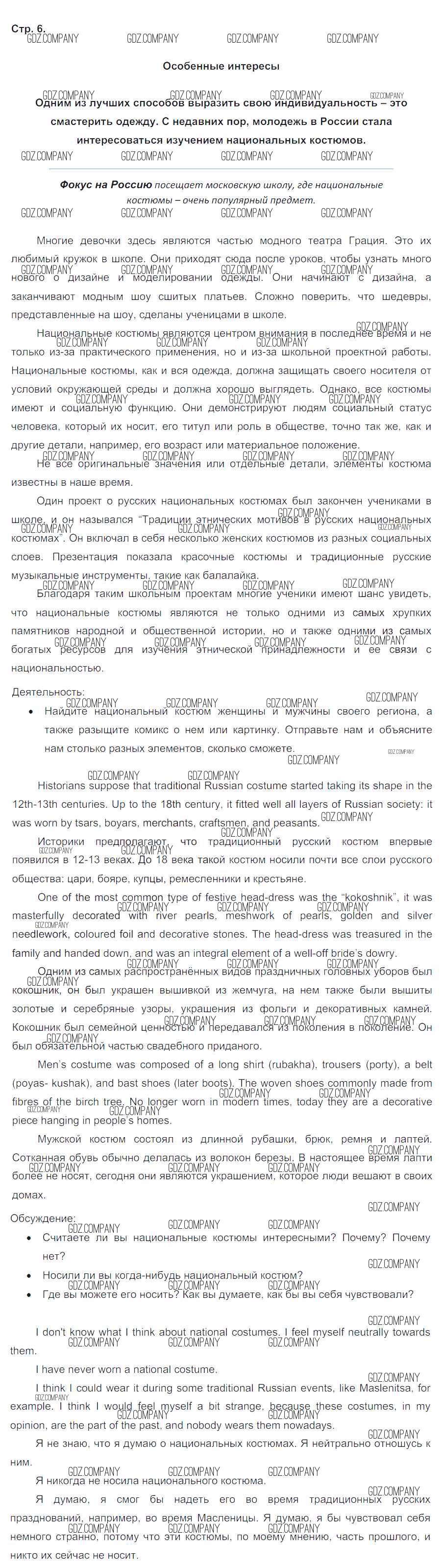 Здесь готовые ответы по Английскому языку за 8 (восьмой) класс от Ваулина, Дули, Эванс, Подоляко Учебник Spotlight (издательство: Просвещение от 2015 г.) № 6