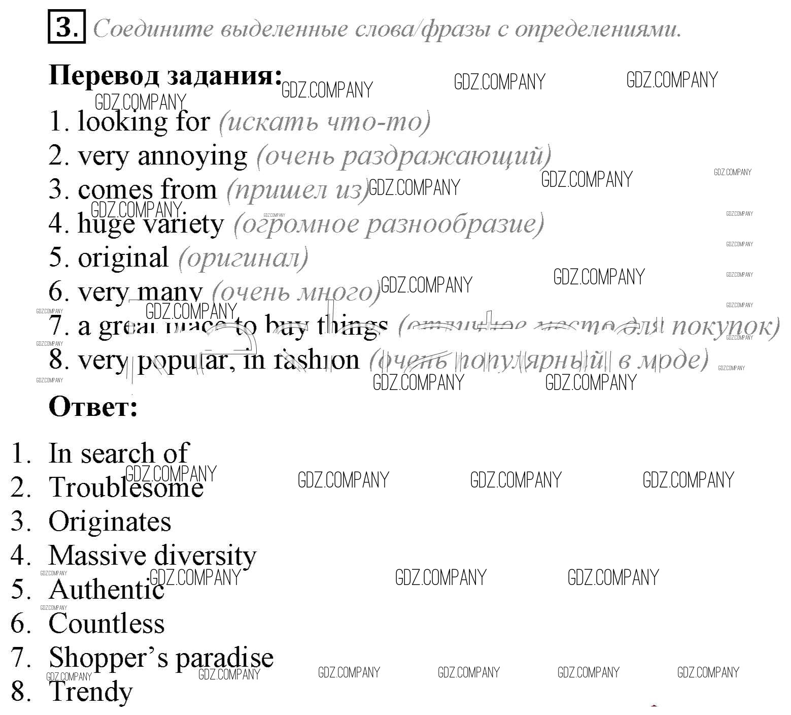 Здесь готовые ответы по Английскому языку за 8 (восьмой) класс от Ваулина, Дули, Подоляко, Эванс Рабочая тетрадь Spotlight (издательство: Просвещение от 2016 г.) № 3