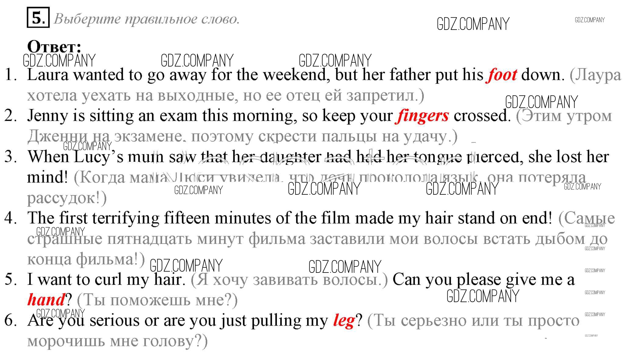 Здесь готовые ответы по Английскому языку за 8 (восьмой) класс от Ваулина, Дули, Подоляко, Эванс Рабочая тетрадь Spotlight (издательство: Просвещение от 2016 г.) № 5