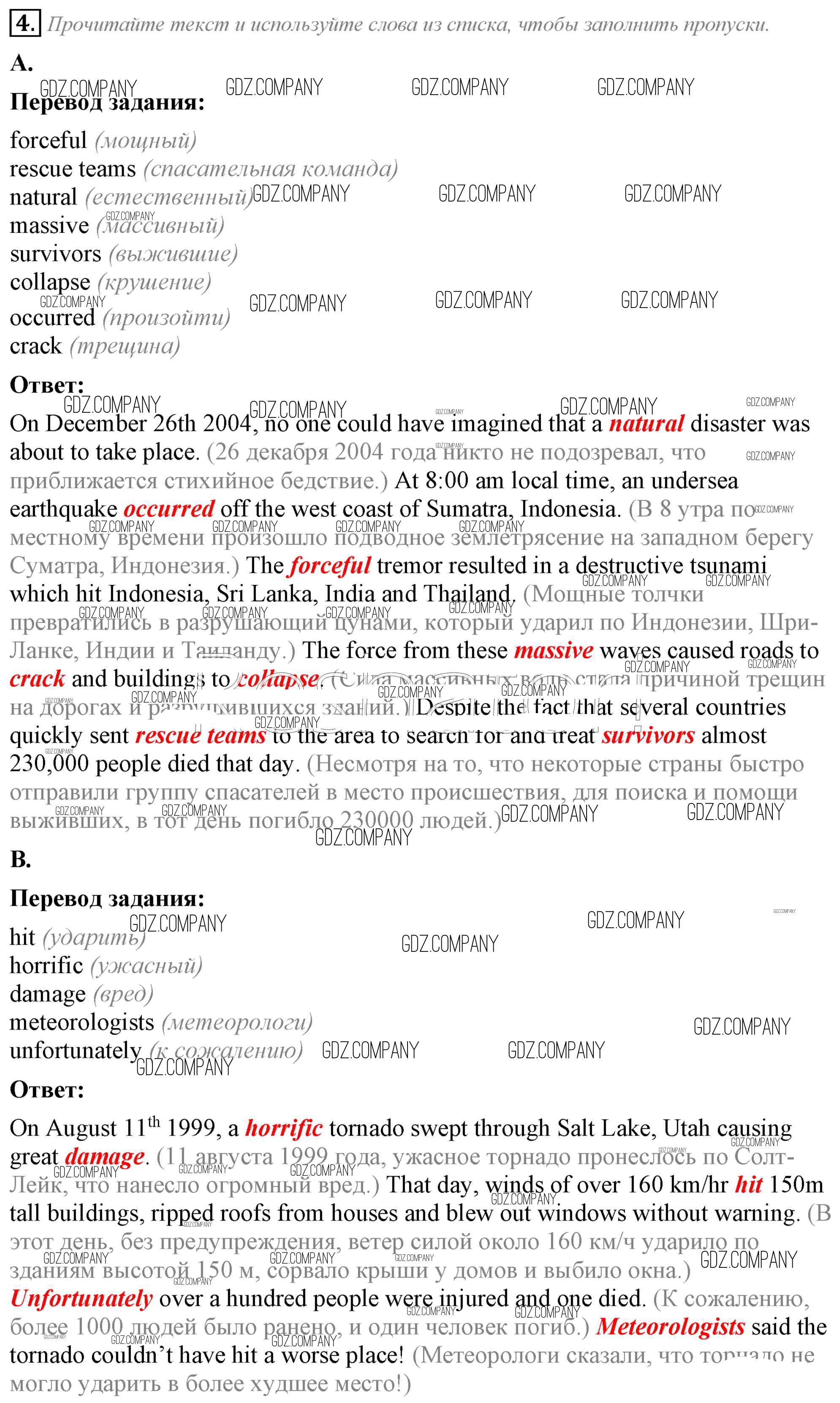 Здесь готовые ответы по Английскому языку за 8 (восьмой) класс от Ваулина, Дули, Подоляко, Эванс Рабочая тетрадь Spotlight (издательство: Просвещение от 2016 г.) № 4