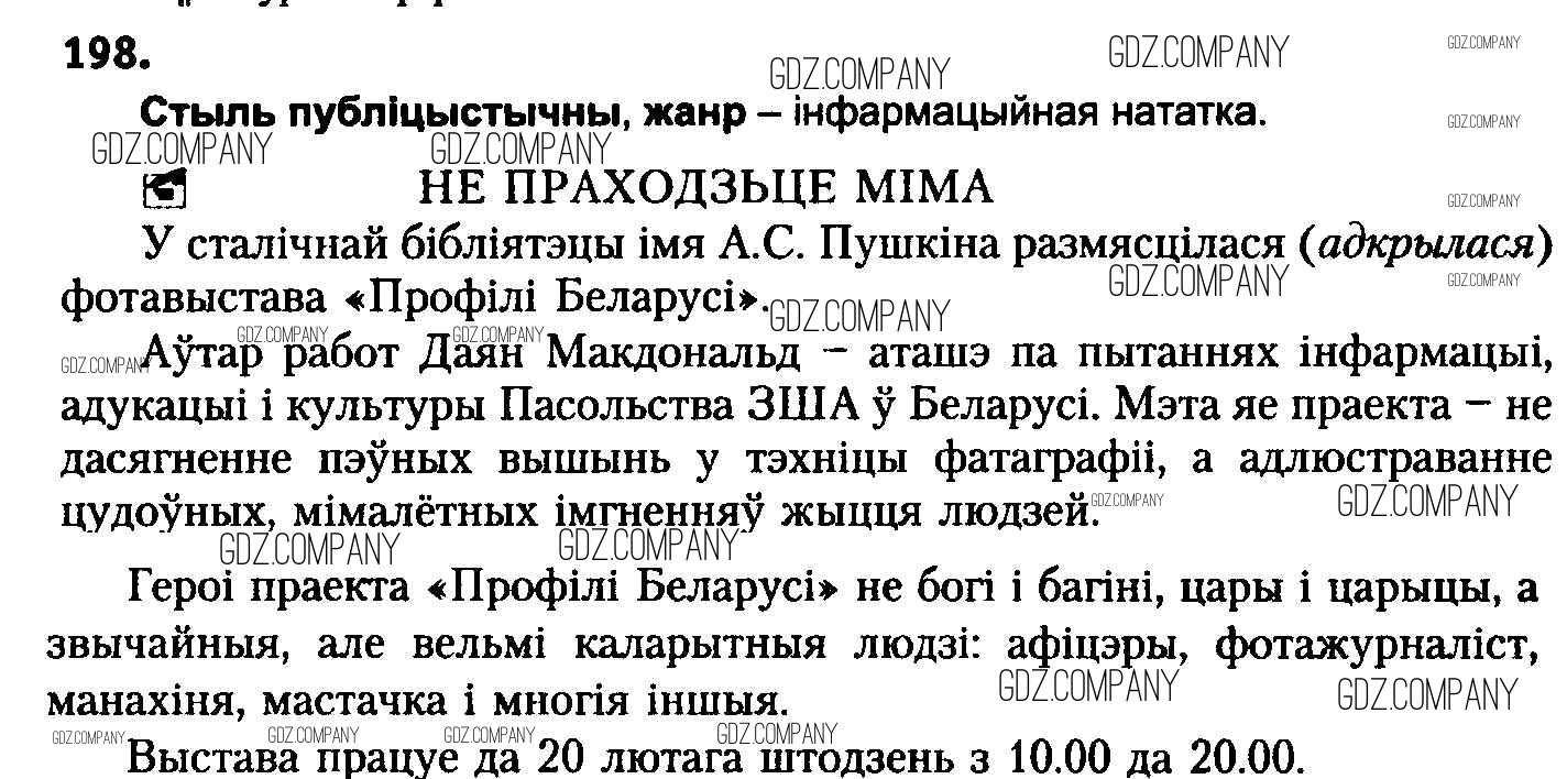 Здесь готовые ответы по Белорусскому языку за 8 (восьмой) класс от Бадзевіч, Саматыя Учебник (издательство: Национальный институт образования от 2015 г.) № 198