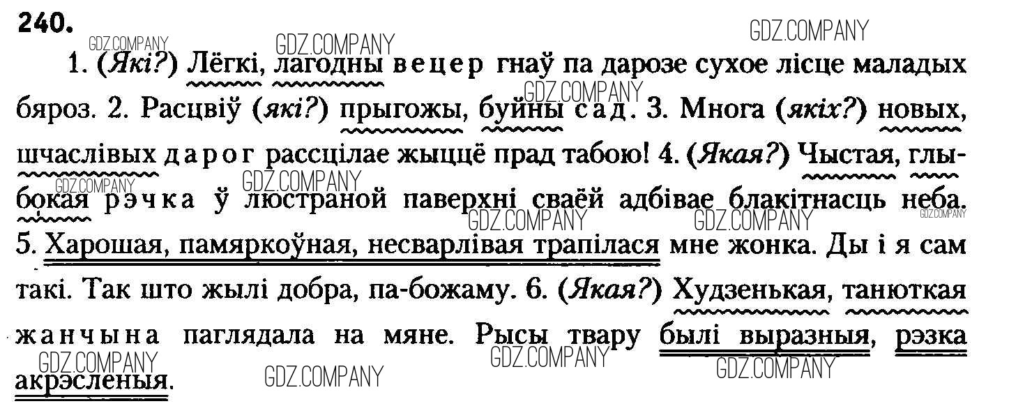 Здесь готовые ответы по Белорусскому языку за 8 (восьмой) класс от Бадзевіч, Саматыя Учебник (издательство: Национальный институт образования от 2015 г.) № 240