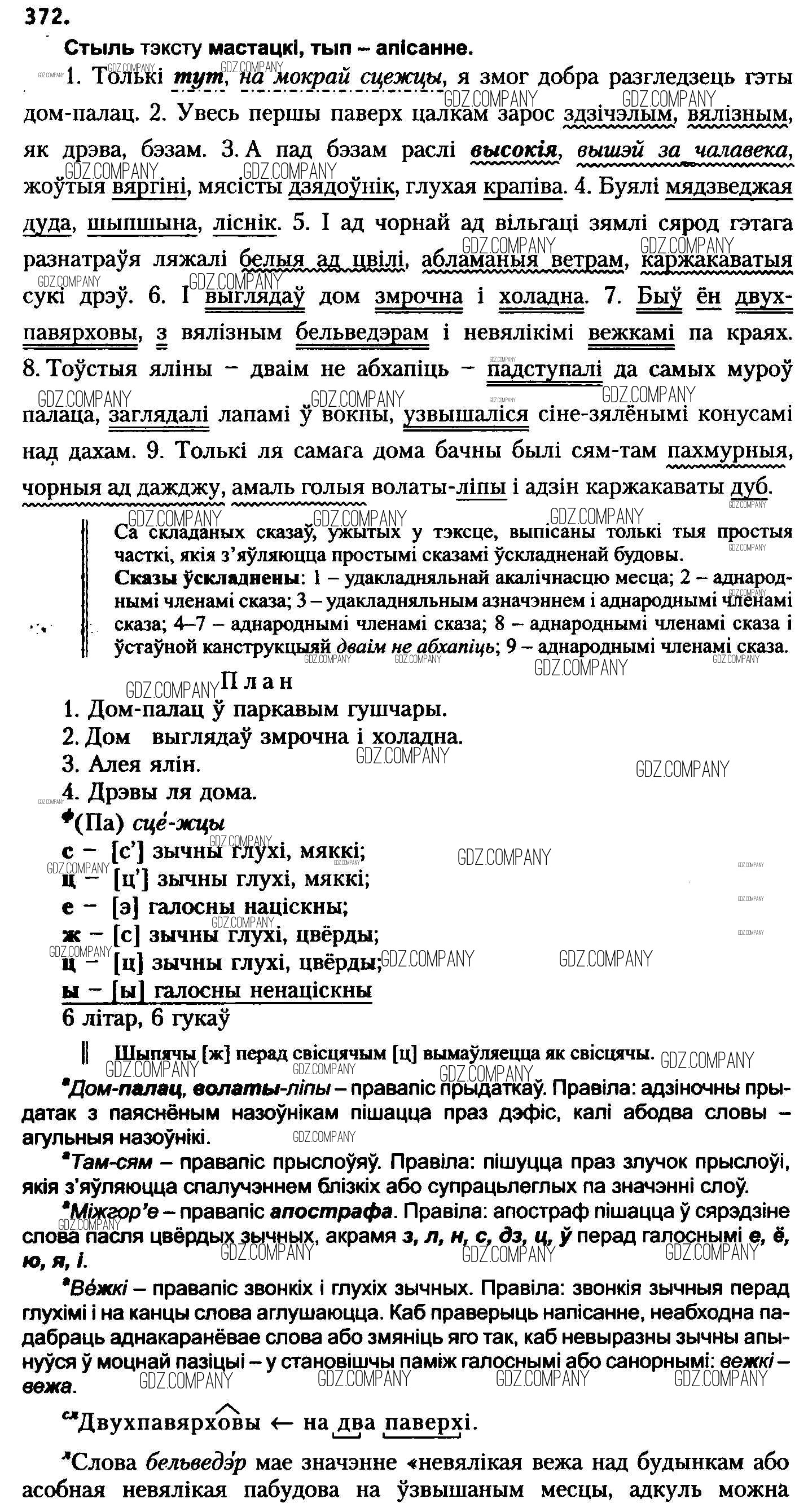 Здесь готовые ответы по Белорусскому языку за 8 (восьмой) класс от Бадзевіч, Саматыя Учебник (издательство: Национальный институт образования от 2015 г.) № 372