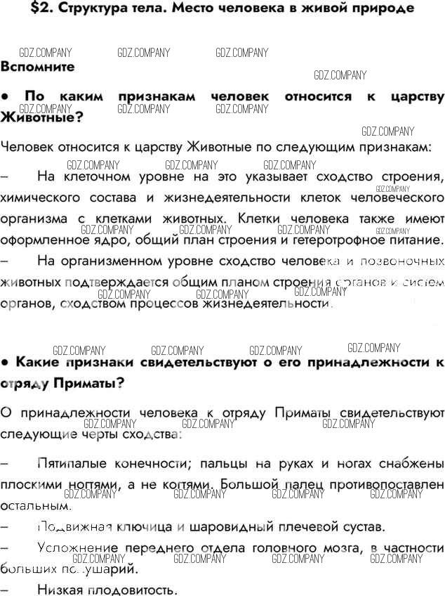 Здесь готовые ответы по Биологии за 8 (восьмой) класс от Драгомилов, Маш Учебник Алгоритм успеха (издательство: Просвещение от 2022 г.) № Вспомним
