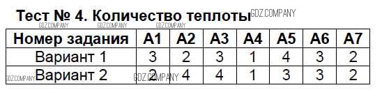 Здесь готовые ответы по Физике за 8 (восьмой) класс от Бобошина Контрольно-измерительные материалы (КИМ) (издательство: Экзамен от 2014 г.) № Тест-4. Количество теплоты