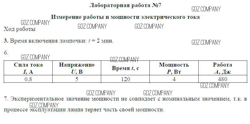 Здесь готовые ответы по Физике за 8 (восьмой) класс от Громов, Родина, Белага Учебник (издательство: Просвещение от 2018 г.) № ЛР №7. Измерение работы и мощности электрического тока