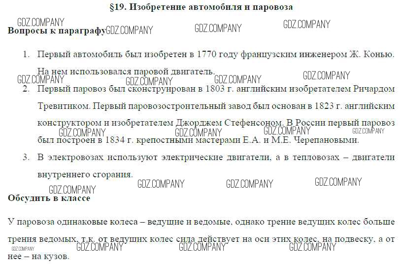 Здесь готовые ответы по Физике за 8 (восьмой) класс от Громов, Родина, Белага Учебник (издательство: Просвещение от 2018 г.) № § 19. Изобретение автомобиля и паровоза