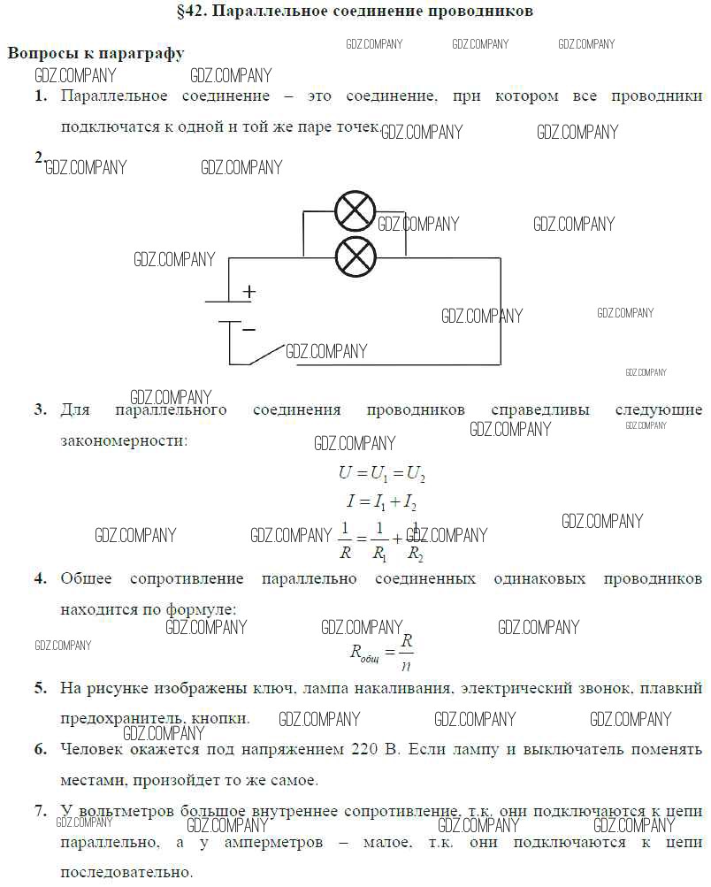 Здесь готовые ответы по Физике за 8 (восьмой) класс от Громов, Родина, Белага Учебник (издательство: Просвещение от 2018 г.) № § 42. Параллельное соединение проводников