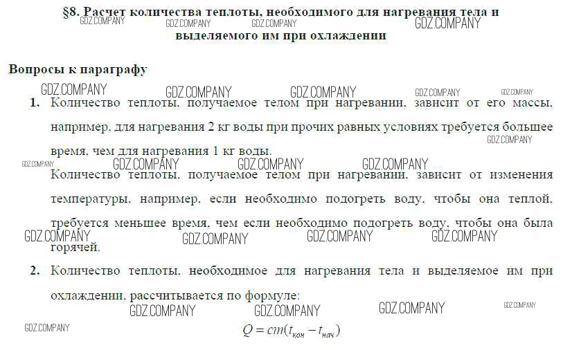 Здесь готовые ответы по Физике за 8 (восьмой) класс от Громов, Родина, Белага Учебник (издательство: Просвещение от 2018 г.) № § 8. Расчет количества теплоты, необходимого для нагревания тела и выделяемого им при охлаждении