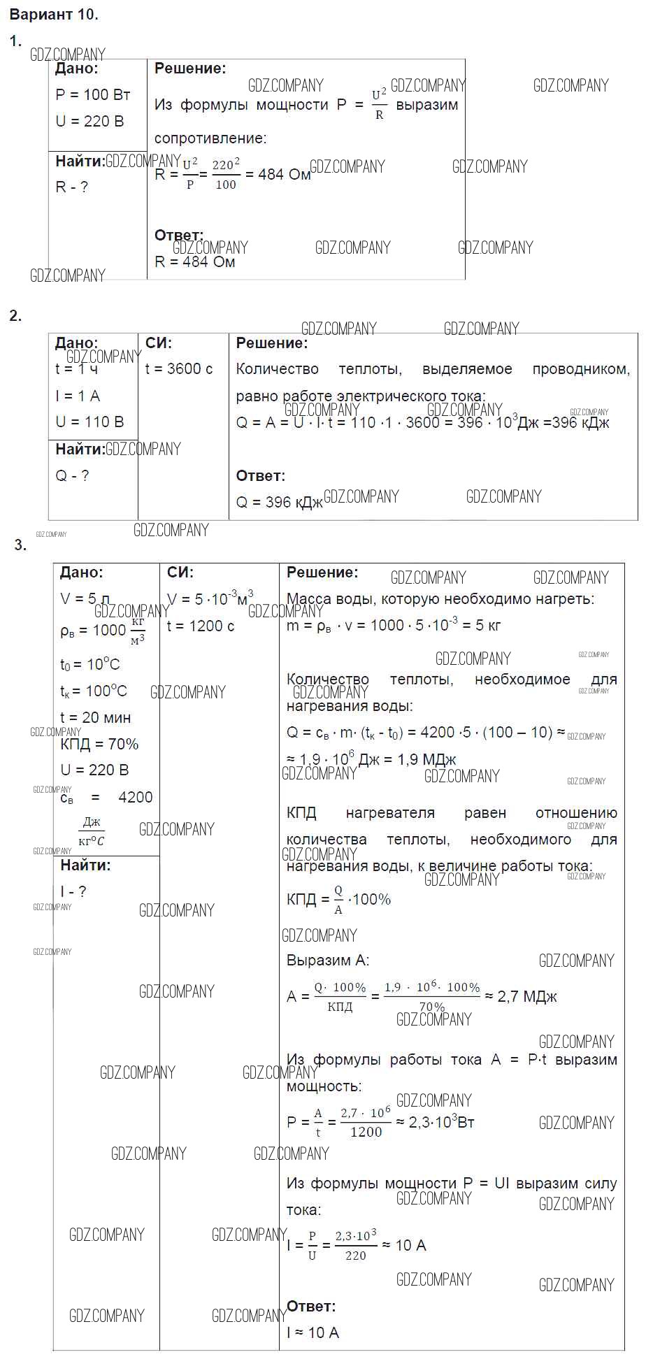 Здесь готовые ответы по Физике за 8 (восьмой) класс от Марон Дидактические материалы Вертикаль (издательство: Дрофа от 2016 г.) № 10