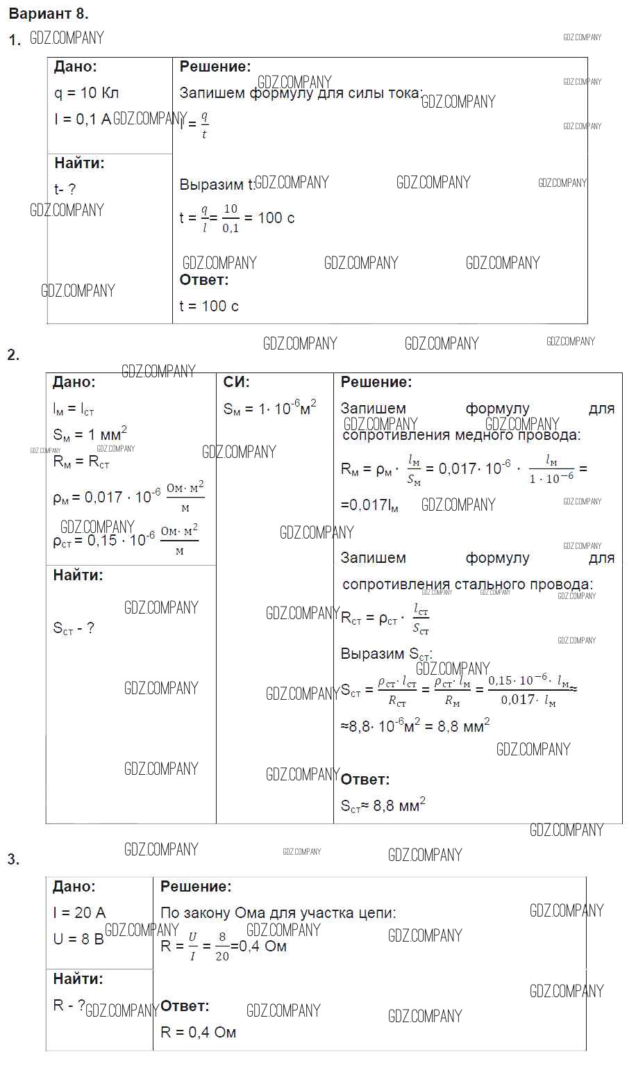 Здесь готовые ответы по Физике за 8 (восьмой) класс от Марон Дидактические материалы Вертикаль (издательство: Дрофа от 2016 г.) № 8