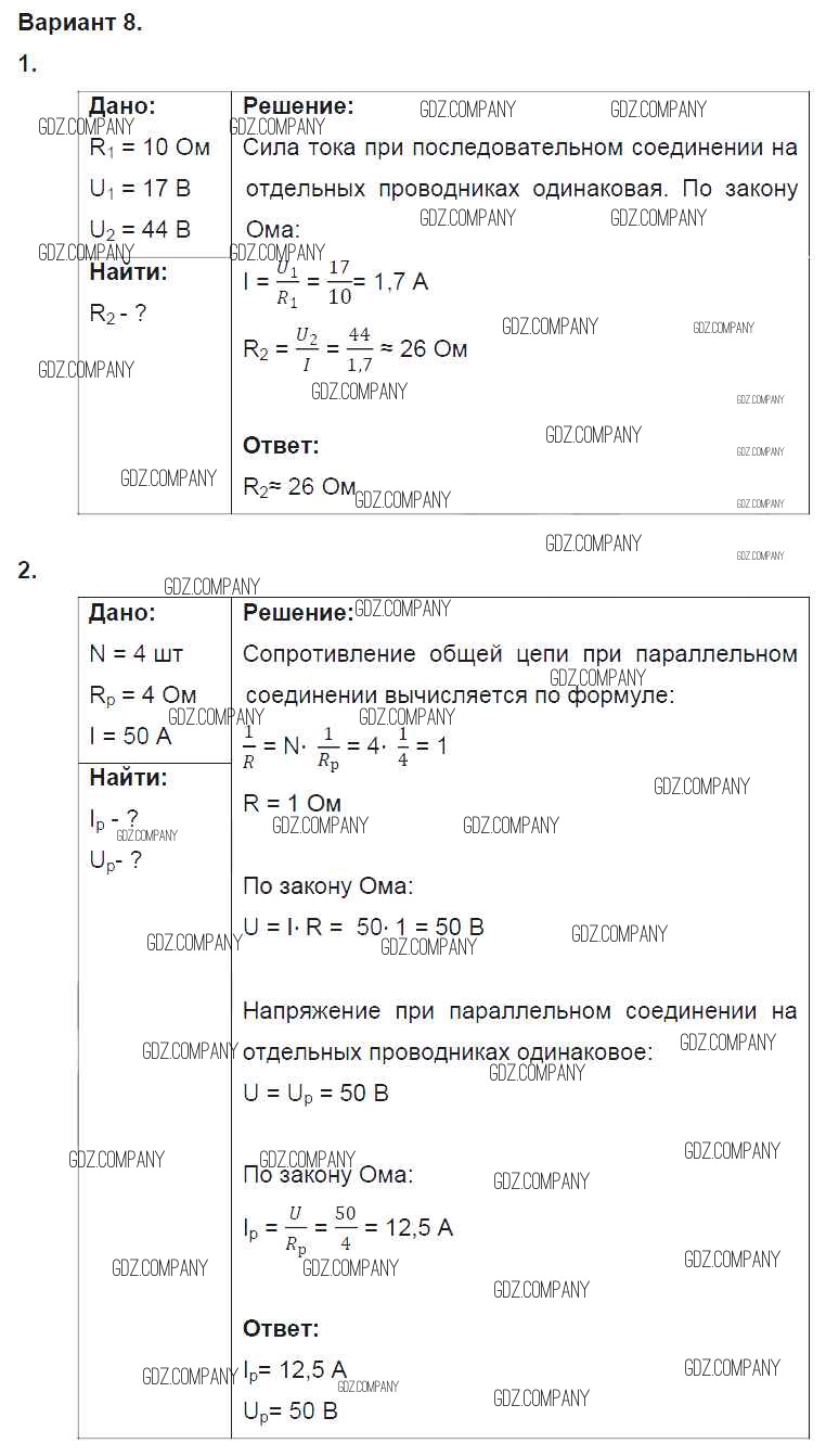 Здесь готовые ответы по Физике за 8 (восьмой) класс от Марон Дидактические материалы Вертикаль (издательство: Дрофа от 2016 г.) № 8