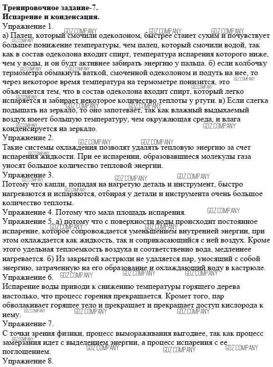 Здесь готовые ответы по Физике за 8 (восьмой) класс от Марон Дидактические материалы Вертикаль (издательство: Дрофа от 2016 г.) № 7. Испарение и конденсация