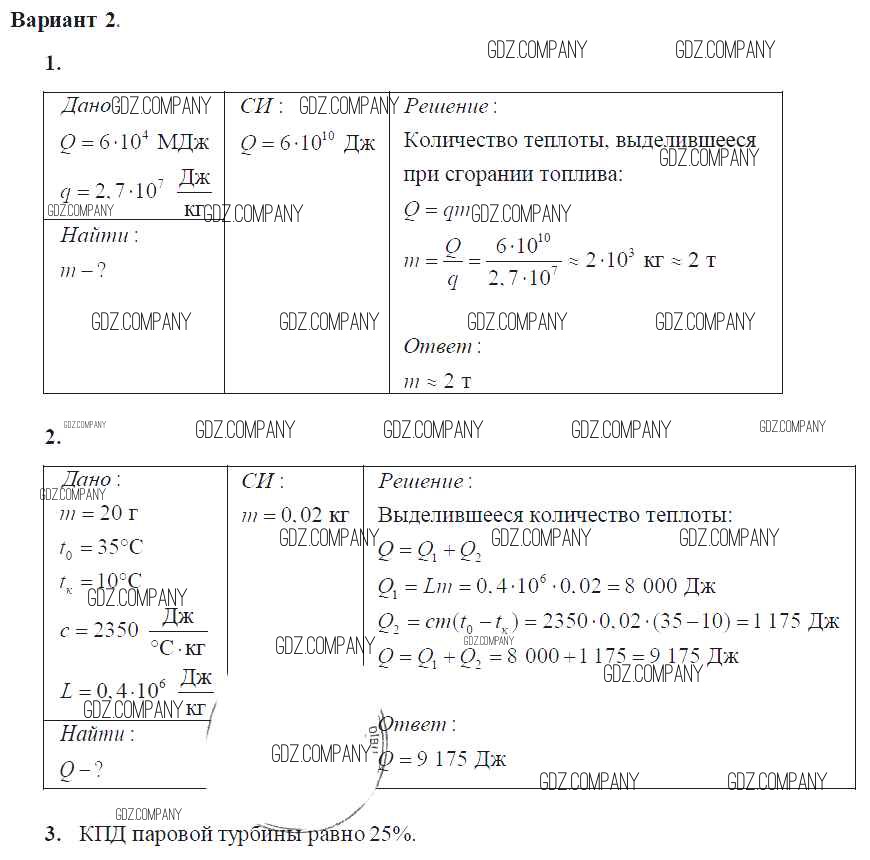 Здесь готовые ответы по Физике за 8 (восьмой) класс от Марон Самостоятельные и контрольные работы Вертикаль (издательство: Дрофа от 2017 г.) № Вариант-2