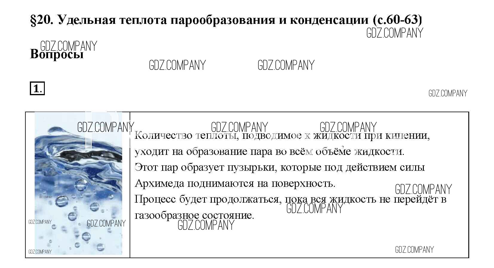 Здесь готовые ответы по Физике за 8 (восьмой) класс от Перышкин Учебник Вертикаль (издательство: Дрофа от 2014 г.) № § 20